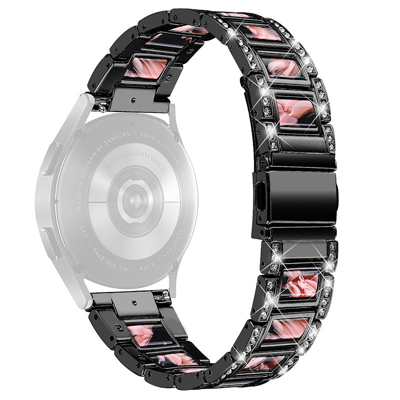 For Huawei Watch GT 2 42mm / Watch 2 / Honor MagicWatch 2 42mm Stainless Steel Watch Band Rhinestone Decor Resin Wrist Strap - Black / Black Pink Mix