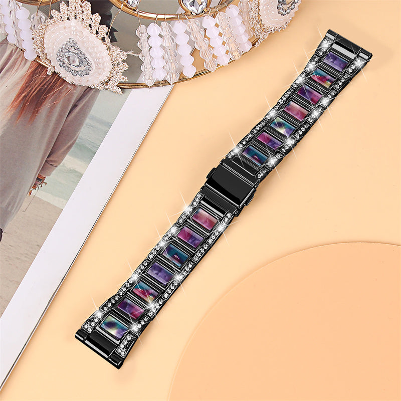 For Huawei Watch GT 2 42mm / Watch 2 / Honor MagicWatch 2 42mm Stainless Steel Watch Band Rhinestone Decor Resin Wrist Strap - Black / Purple Green Mix