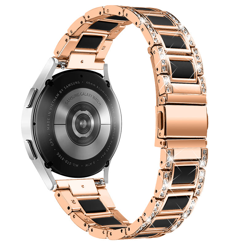 For Huawei Watch GT 2 42mm / Watch 2 / Honor MagicWatch 2 42mm Stainless Steel Watch Band Rhinestone Decor Resin Wrist Strap - Rose Gold / Black