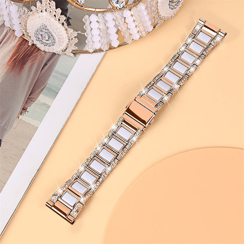 For Huawei Watch GT 2 42mm / Watch 2 / Honor MagicWatch 2 42mm Stainless Steel Watch Band Rhinestone Decor Resin Wrist Strap - Rose Gold / White