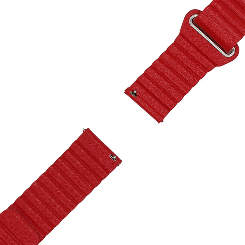 20mm Magnetic Loop Genuine Leather Watch Band for Samsung Galaxy Watch4 Classic 46mm 42mm/Watch4 44mm 40mm/Gear Sport SM-600 - Red