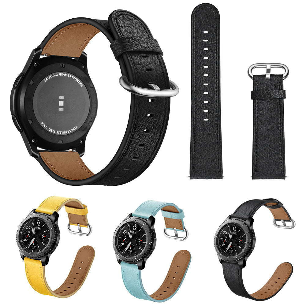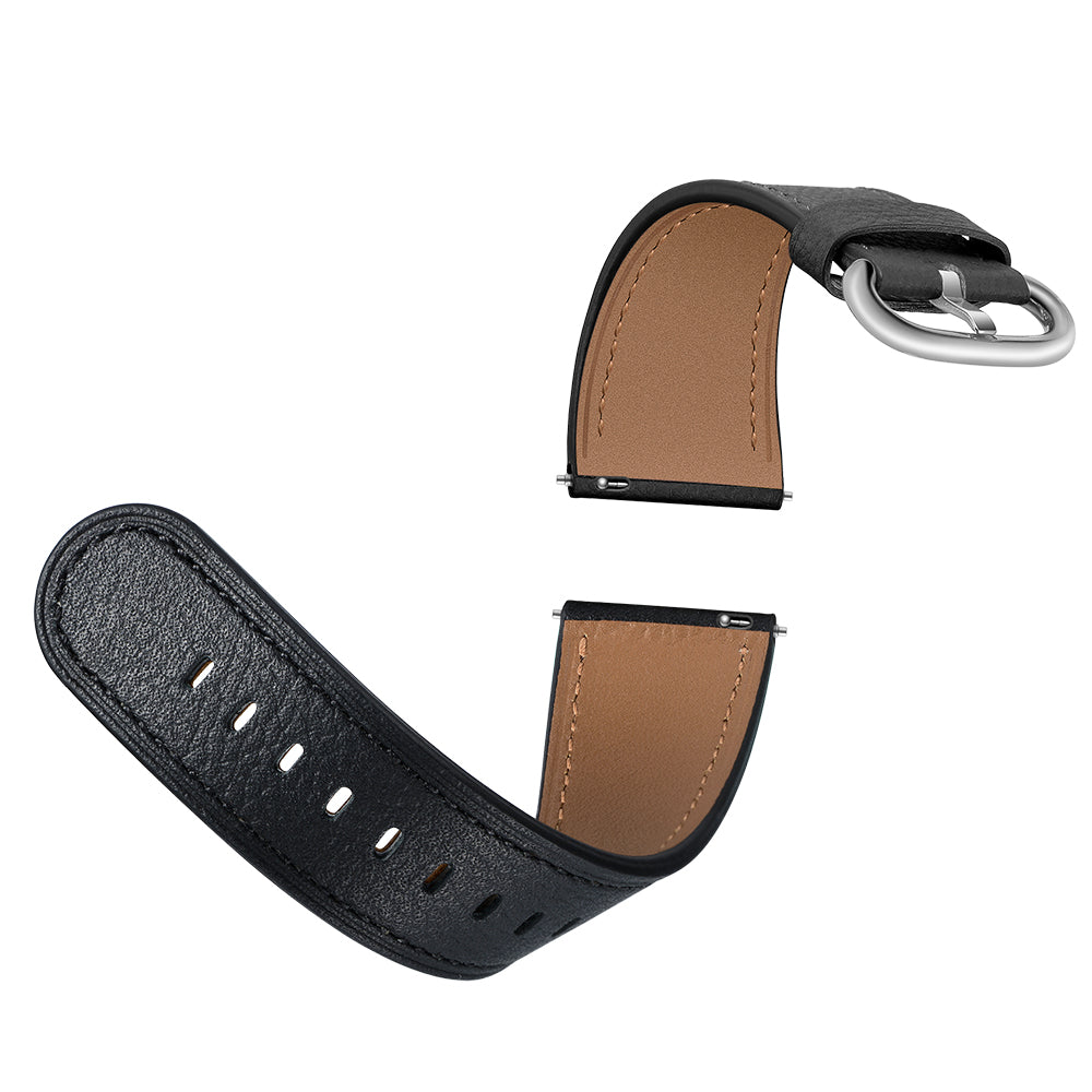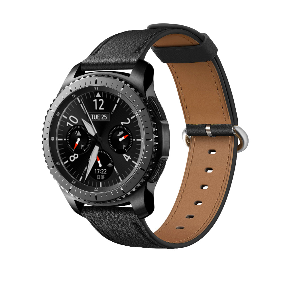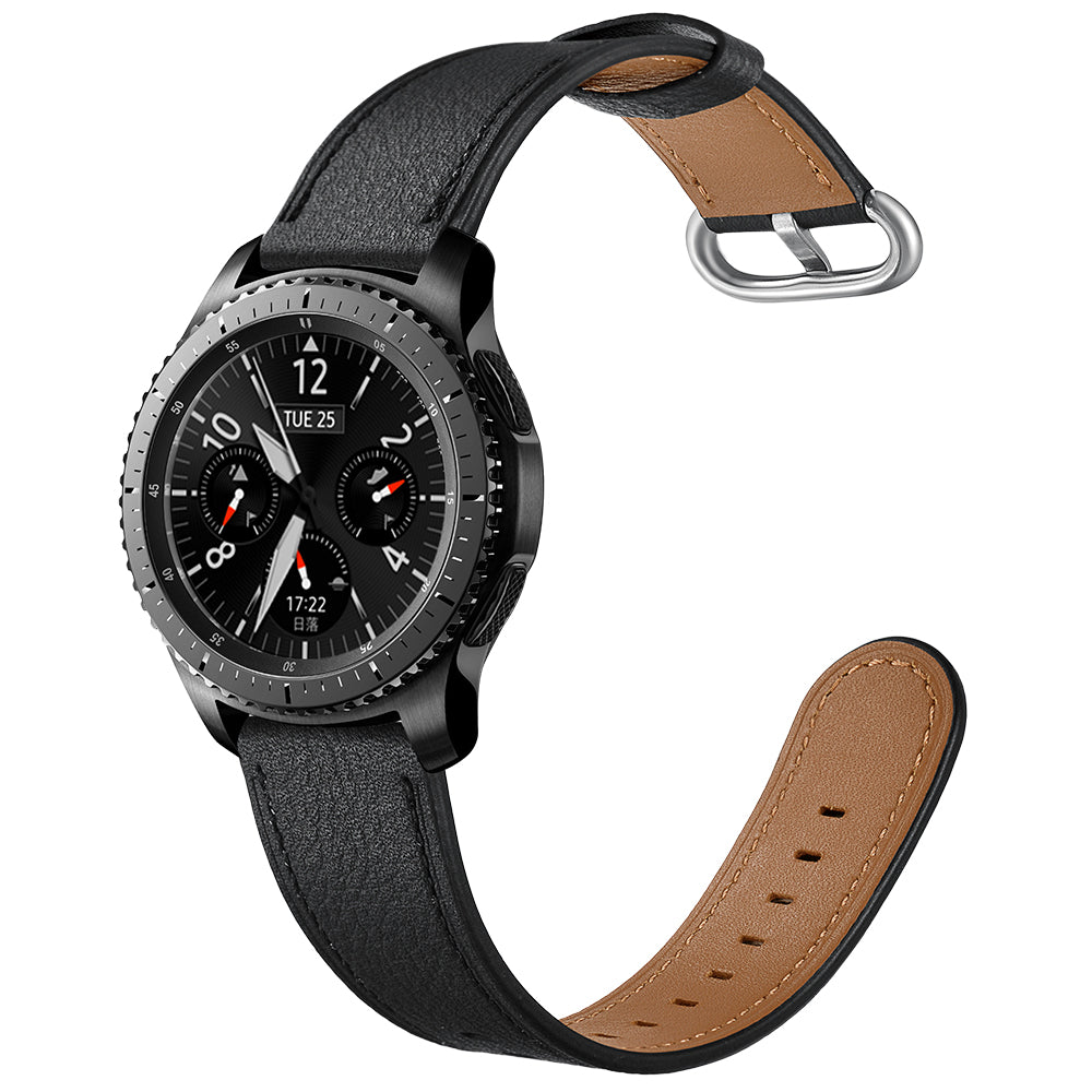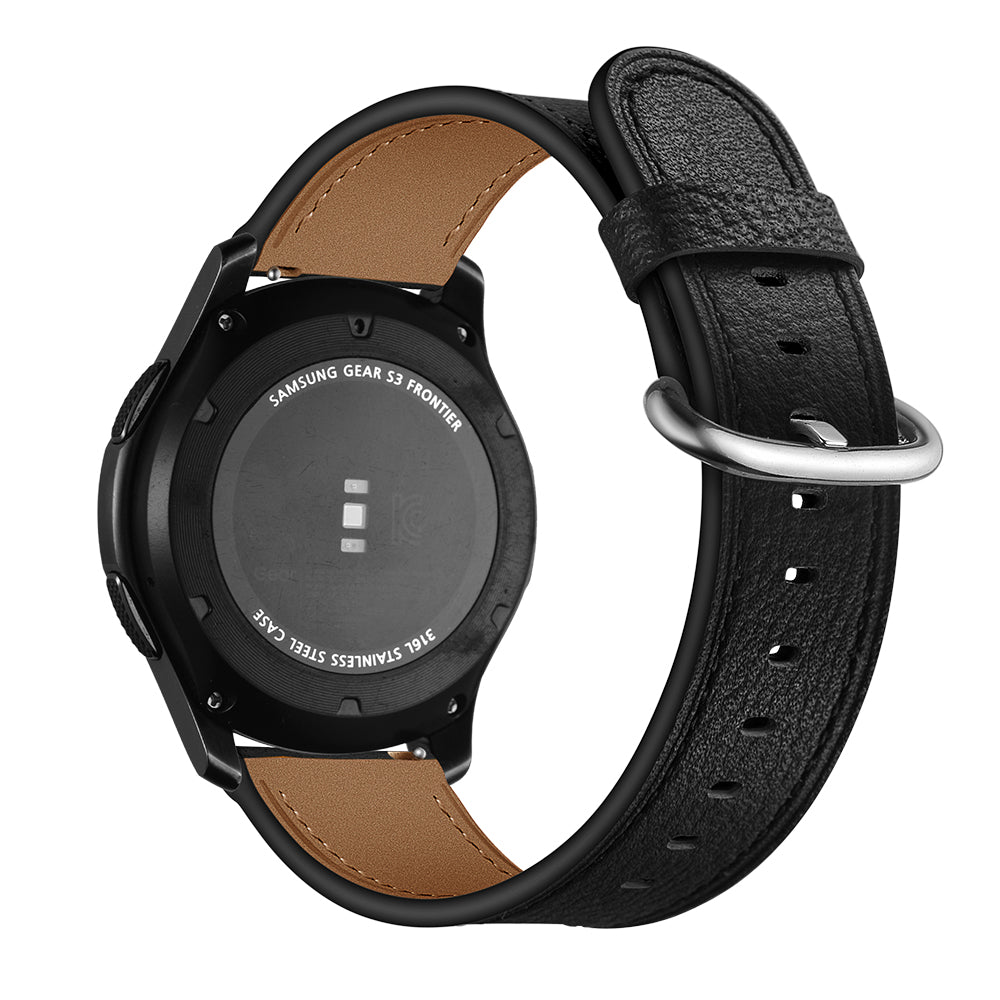 22mm Genuine Leather Watch Strap Smart Watch Band Watchband for Samsung Gear S3 Classic / S3 Frontier - Black
