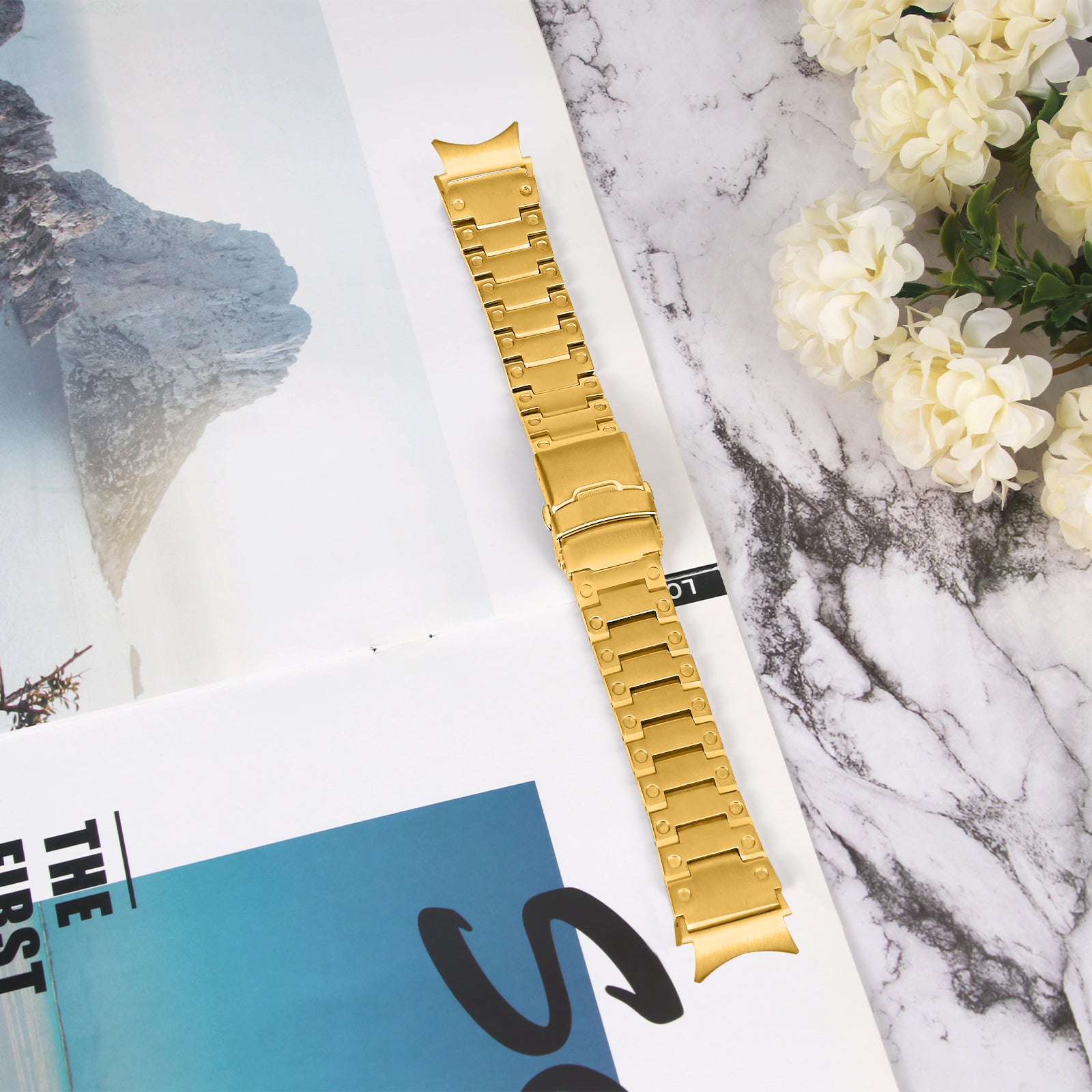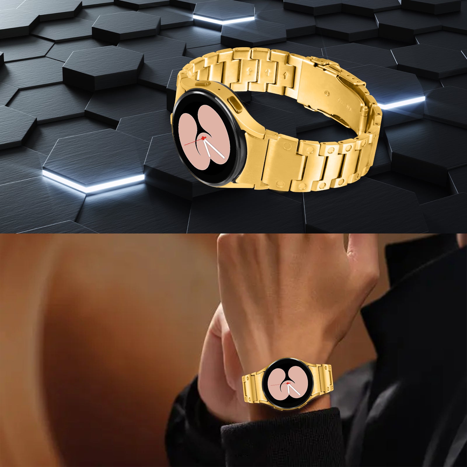 For Samsung Galaxy Watch 5 Active 40mm 44mm / Watch 5 Pro 45mm Watchband Replacement Stainless Steel Wrist Strap - Gold