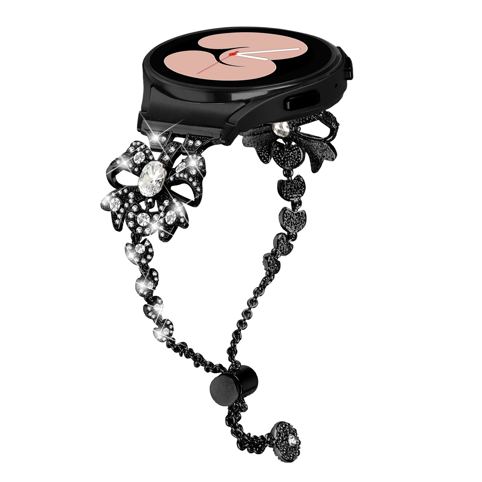 For Samsung Galaxy Watch4 40 / 44mm / Watch 5 40 / 44mm / Watch4 Classic 42 / 46mm Stainless Steel Watch Band Rhinestone Bowknot Strap with Connector - Black