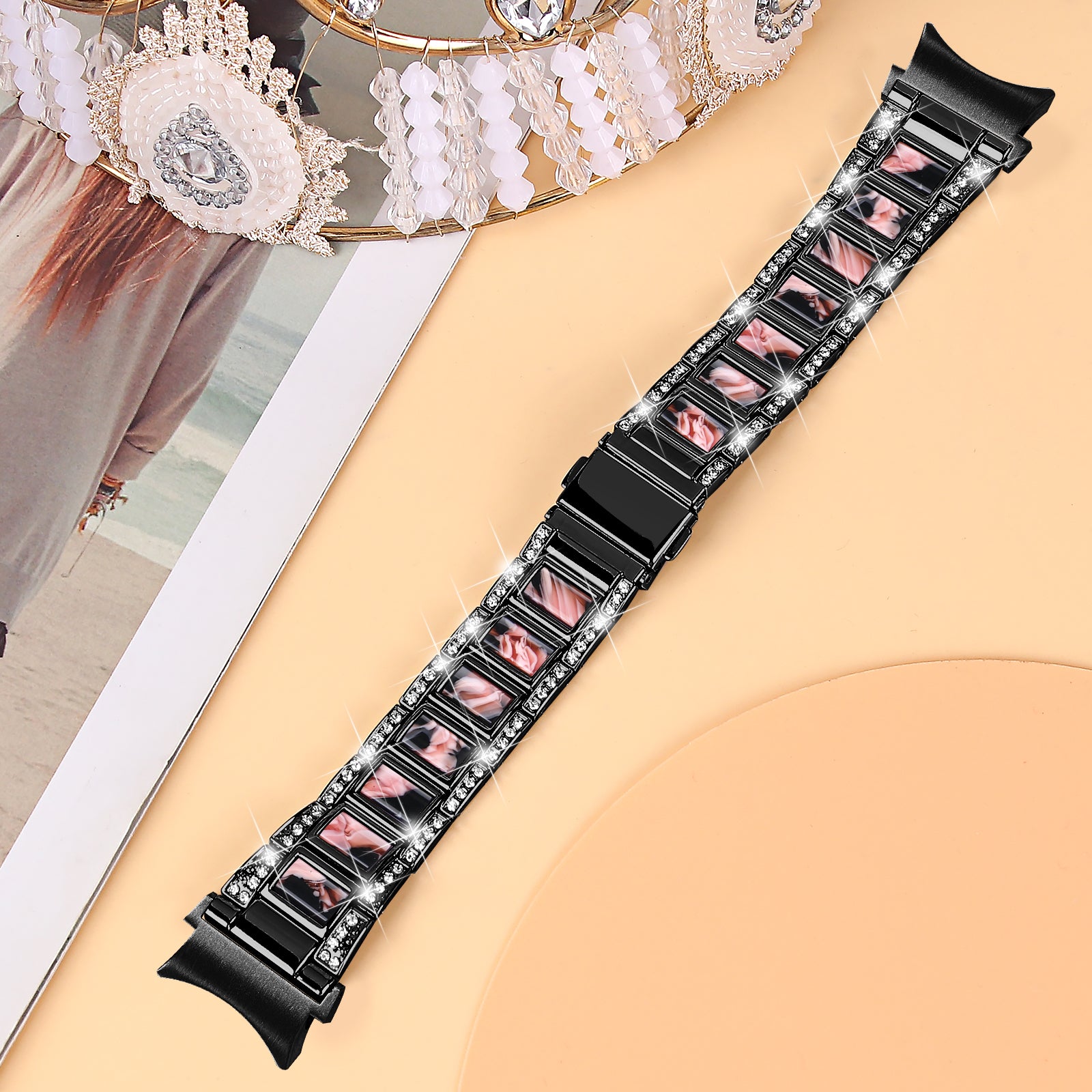 For Samsung Galaxy Watch4 Active 40mm/44mm/Watch4 Classic 42mm/46mm Rhinestone Decor Stainless Steel Resin Watch Band with Watch Strap Adapter - Black/Black Pink Mix