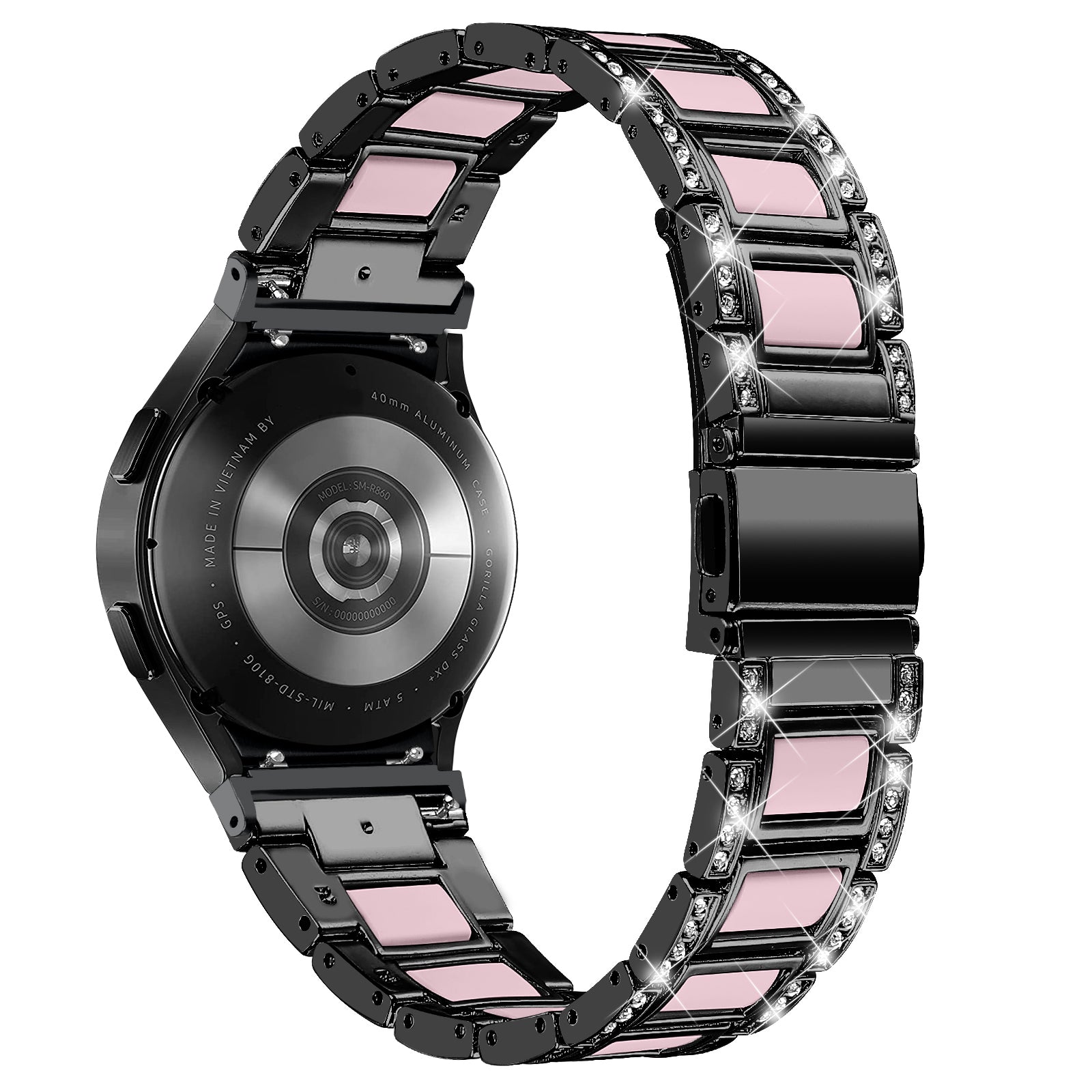 For Samsung Galaxy Watch4 Active 40mm/44mm/Watch4 Classic 42mm/46mm Rhinestone Decor Stainless Steel Resin Watch Band with Watch Strap Adapter - Black/Pink
