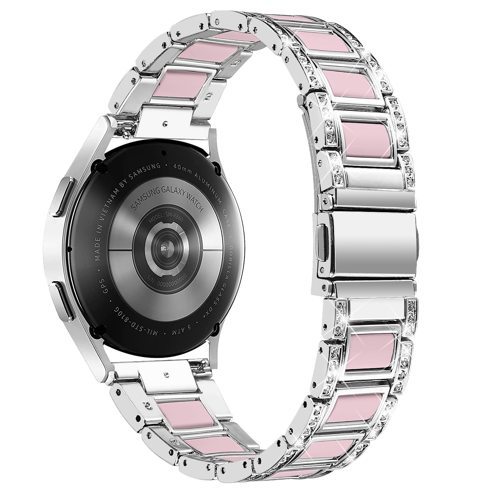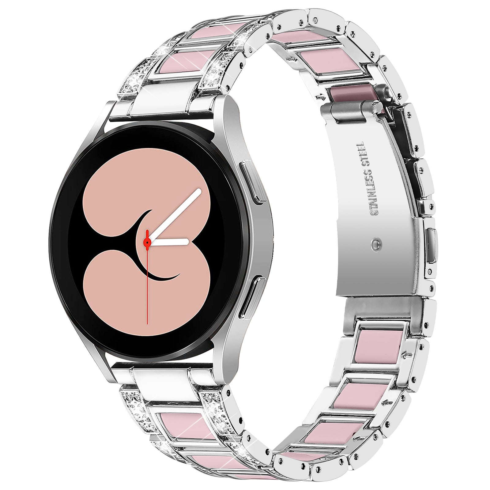 For Samsung Galaxy Watch4 Active 40mm/44mm/Watch4 Classic 42mm/46mm Stylish Rhinestone Decor Stainless Steel Resin Watch Band Wrist Strap - Silver/Pink