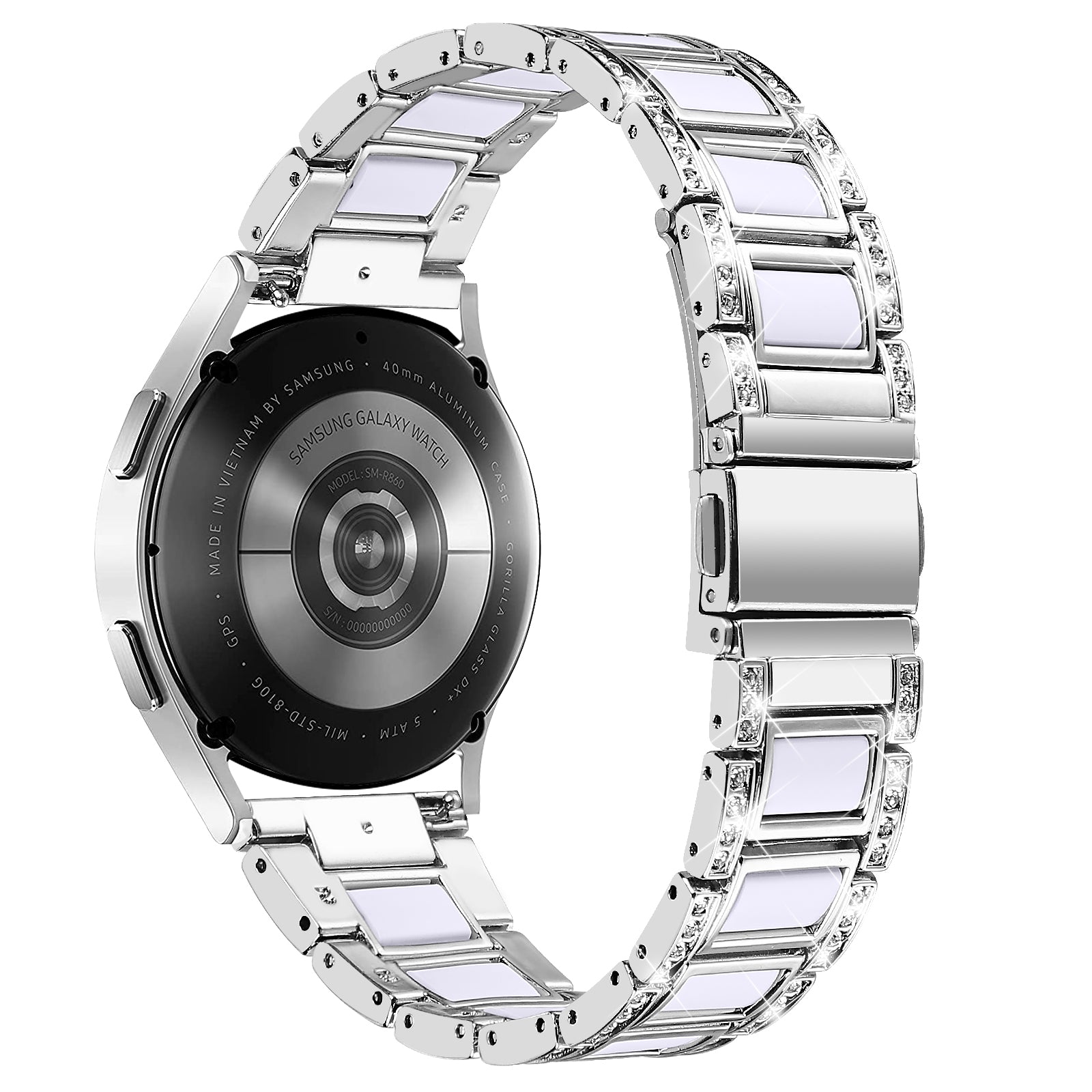 For Samsung Galaxy Watch4 Active 40mm/44mm/Watch4 Classic 42mm/46mm Stylish Rhinestone Decor Stainless Steel Resin Watch Band Wrist Strap - Silver/White