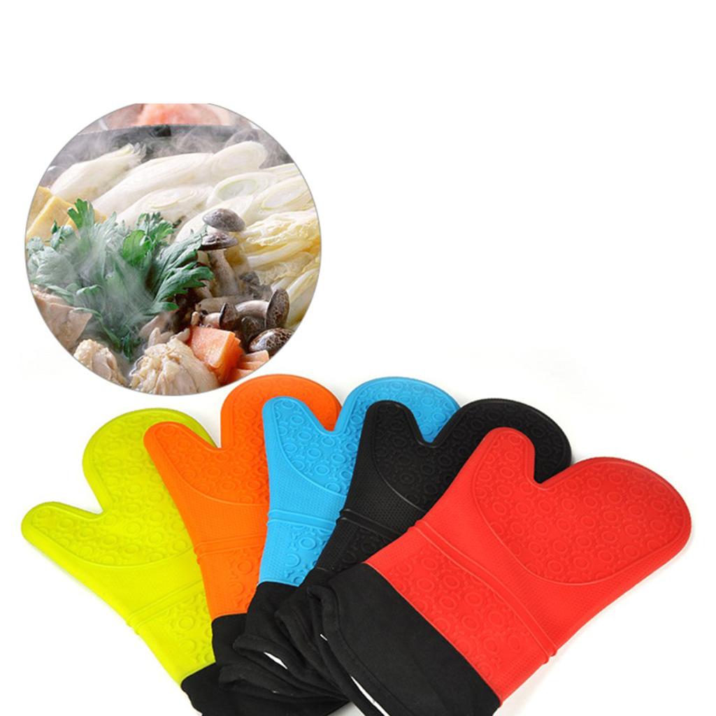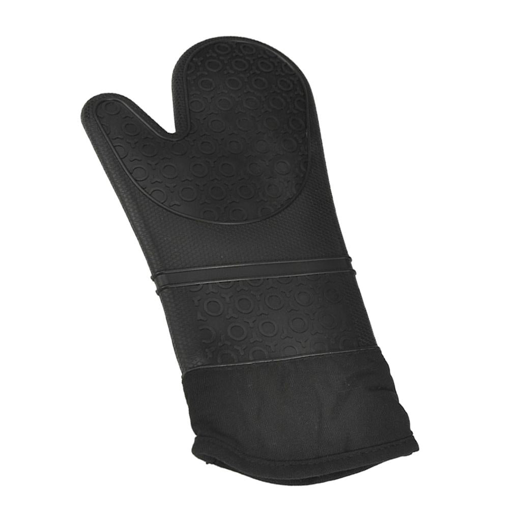 1 Pc Silicone+Cotton Oven Mitts Heatproof Kitchen Baking Oven Gloves Black