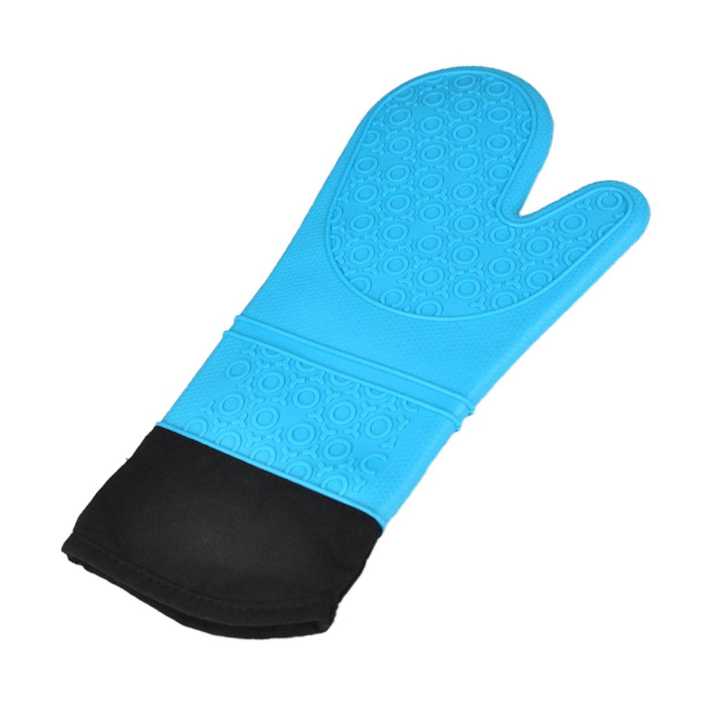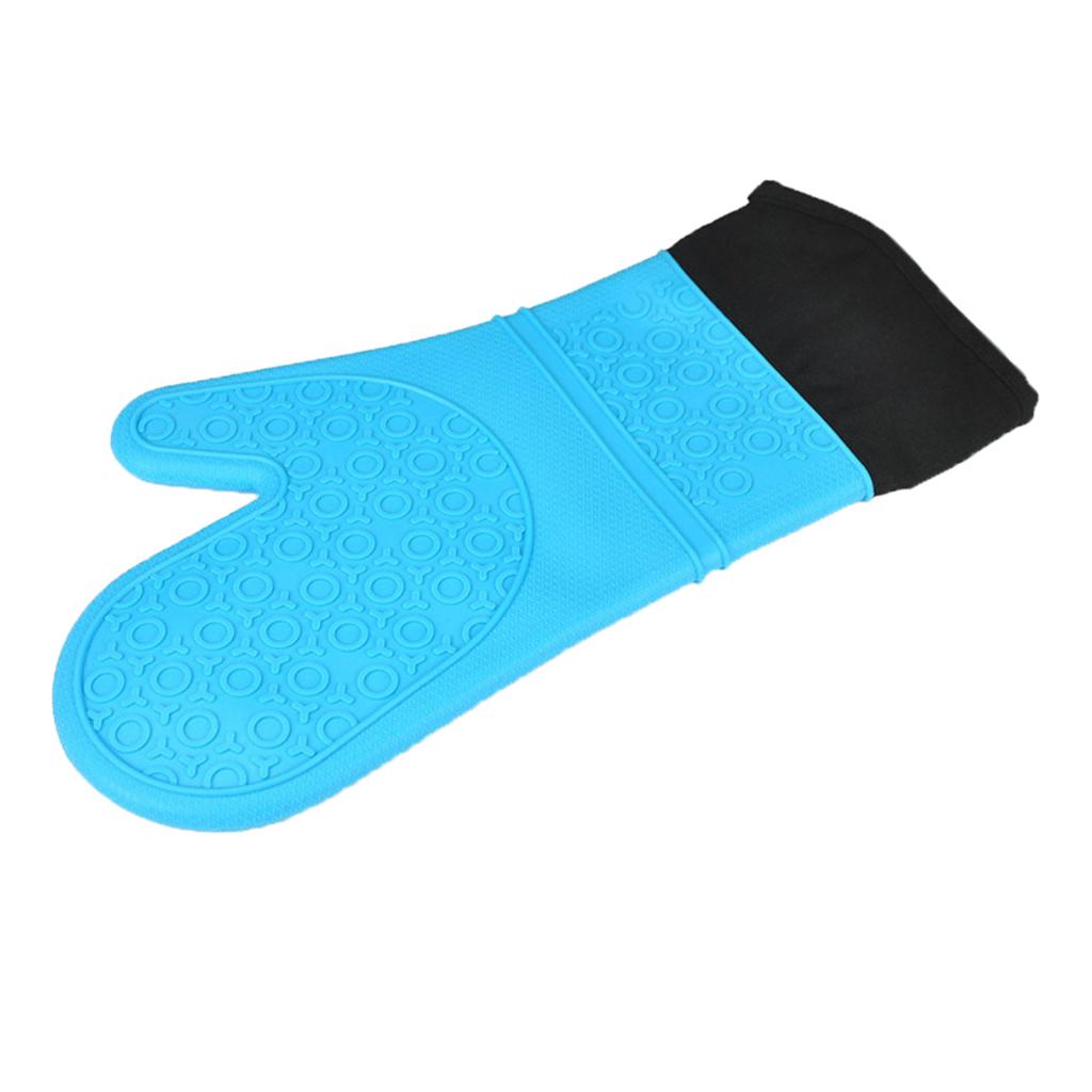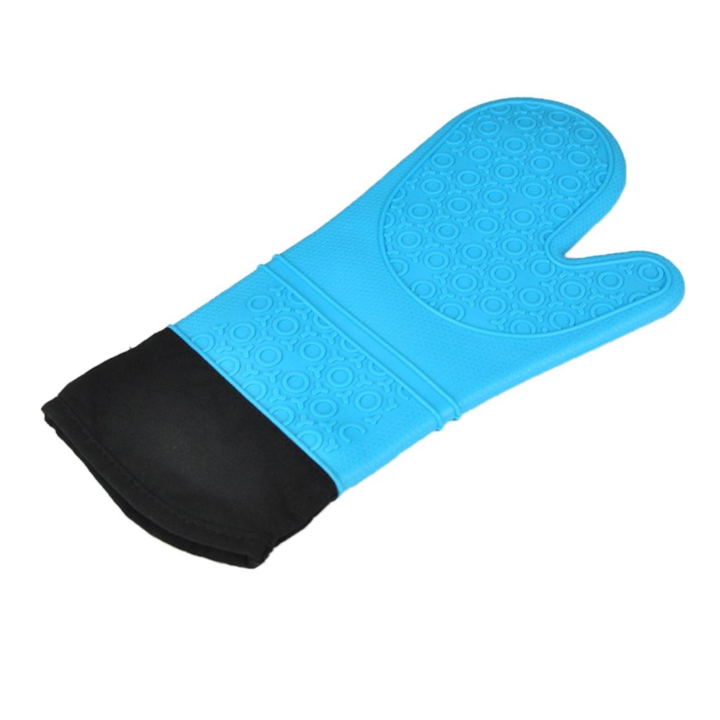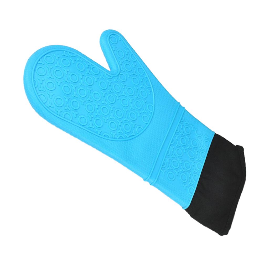 1 Pc Silicone+Cotton Oven Mitts Heatproof Kitchen Baking Oven Gloves Blue