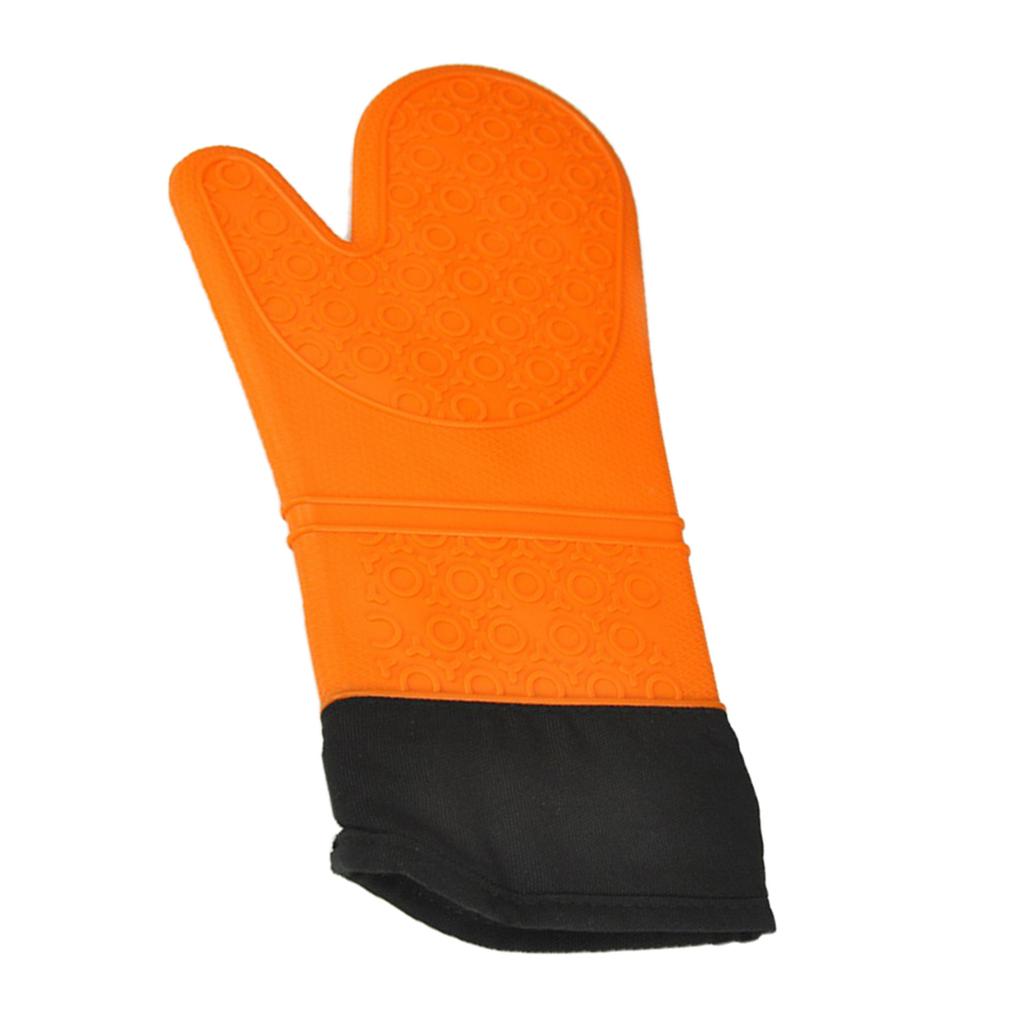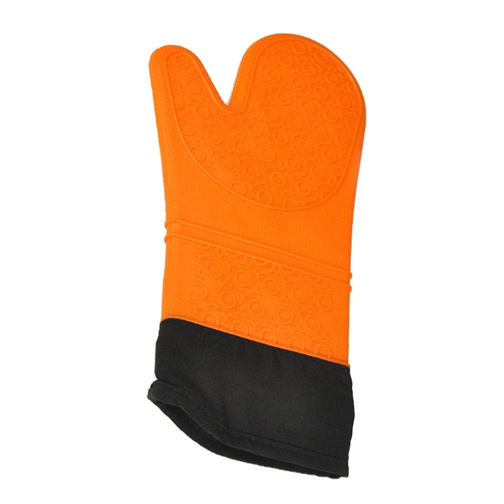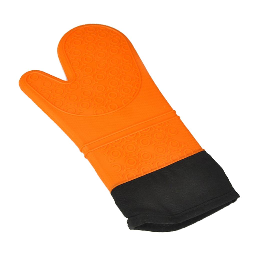1 Pc Silicone+Cotton Oven Mitts Heatproof Kitchen Baking Oven Gloves Orange
