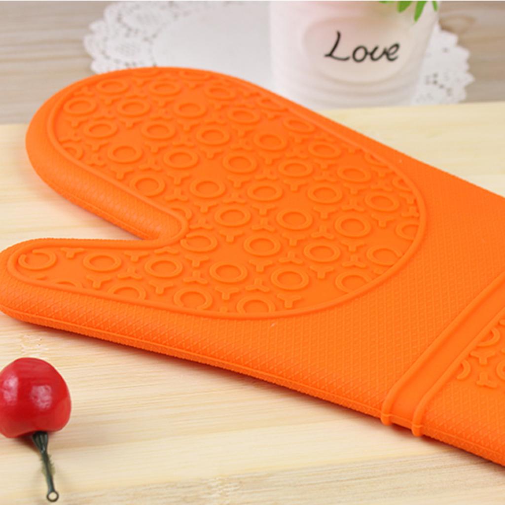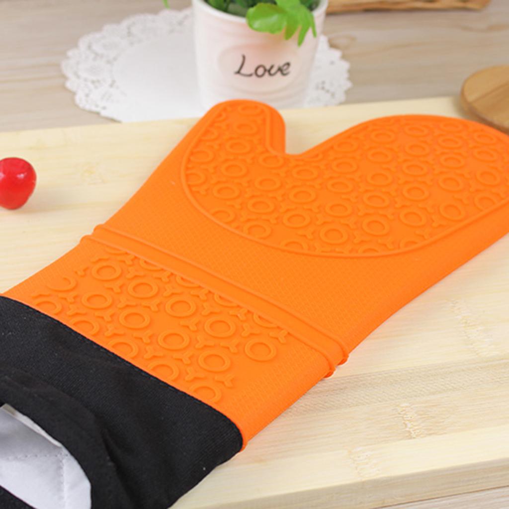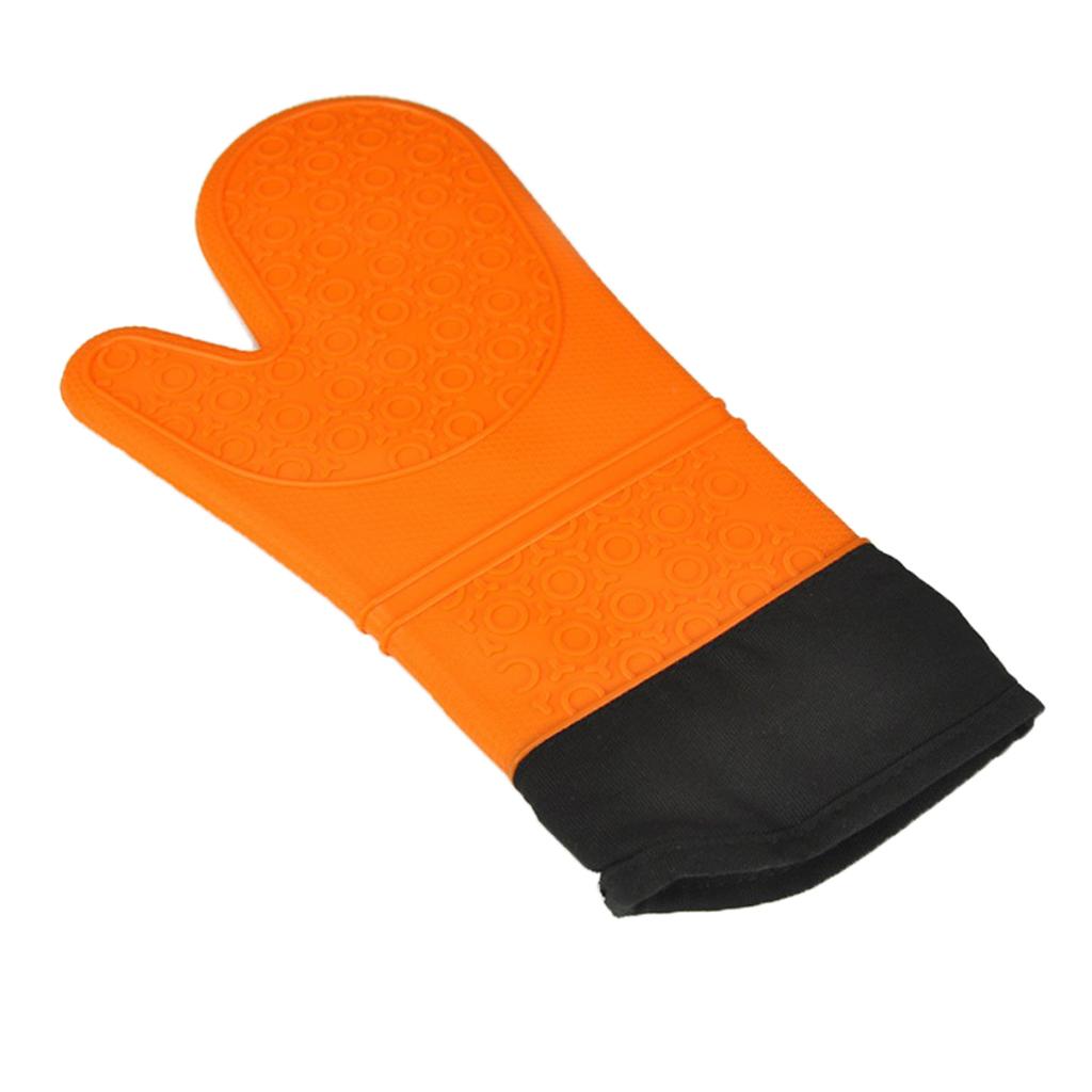 1 Pc Silicone+Cotton Oven Mitts Heatproof Kitchen Baking Oven Gloves Orange