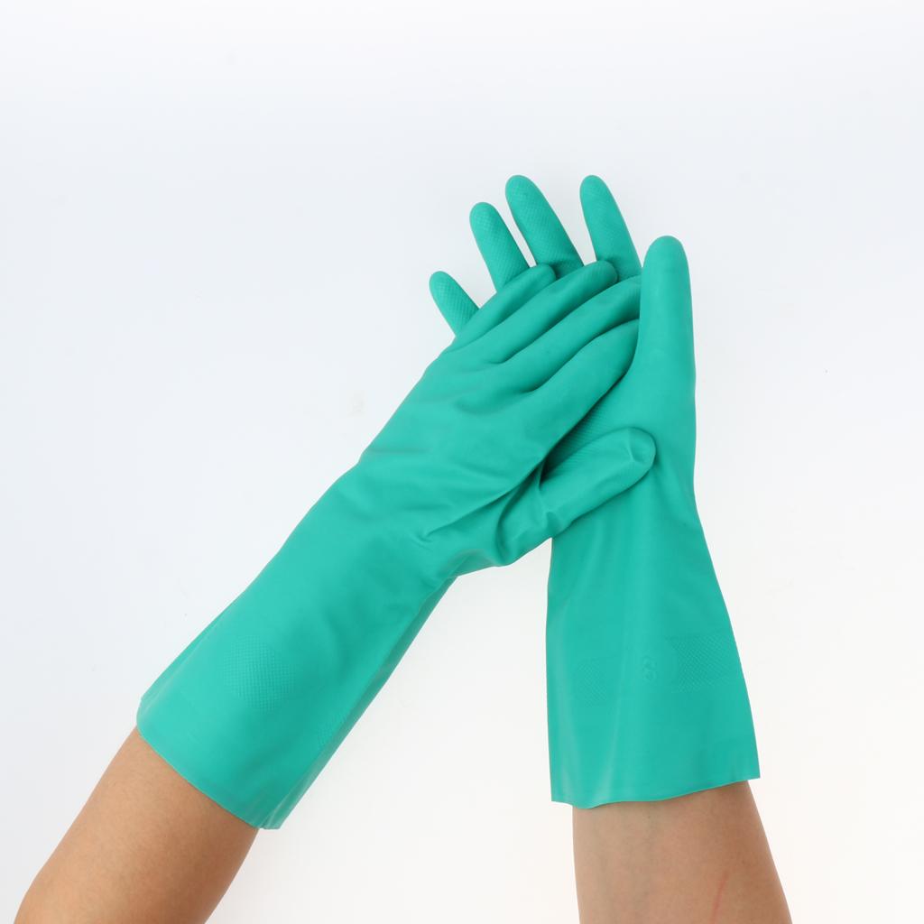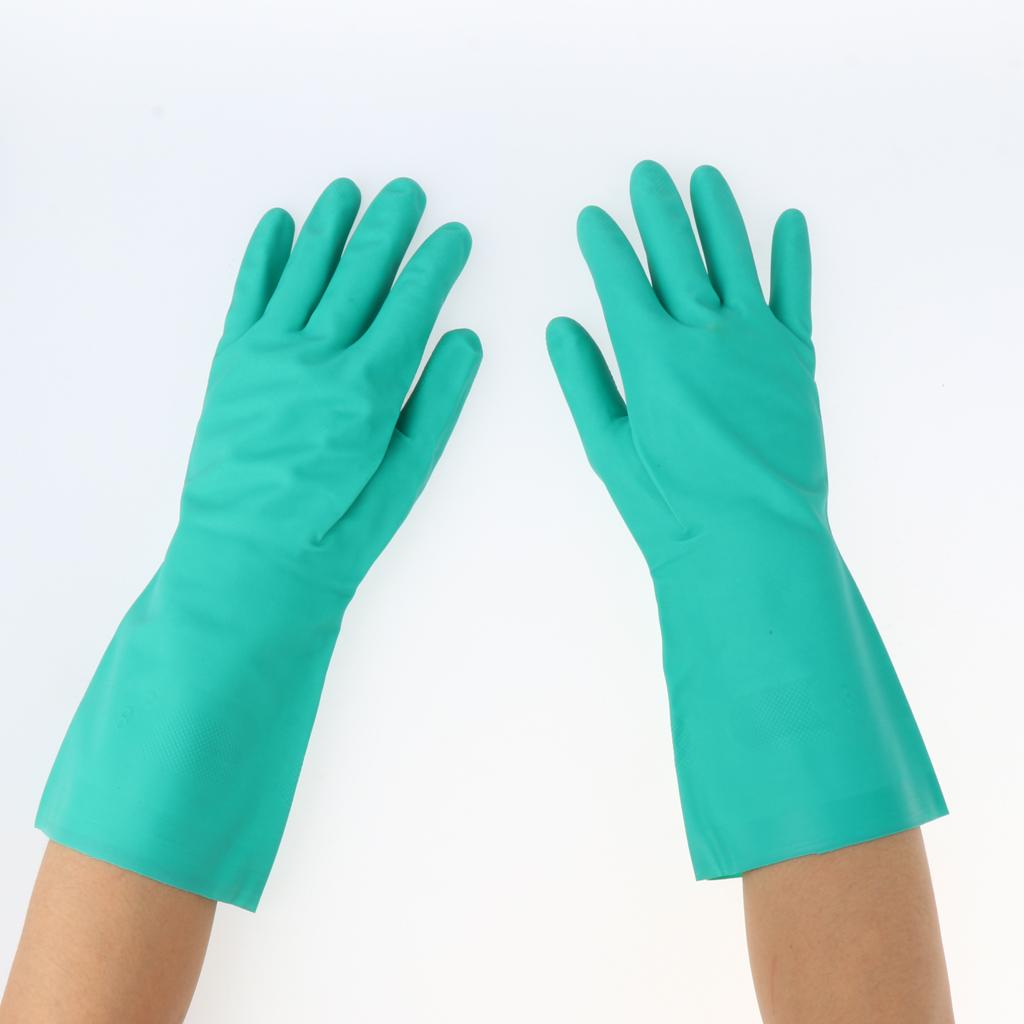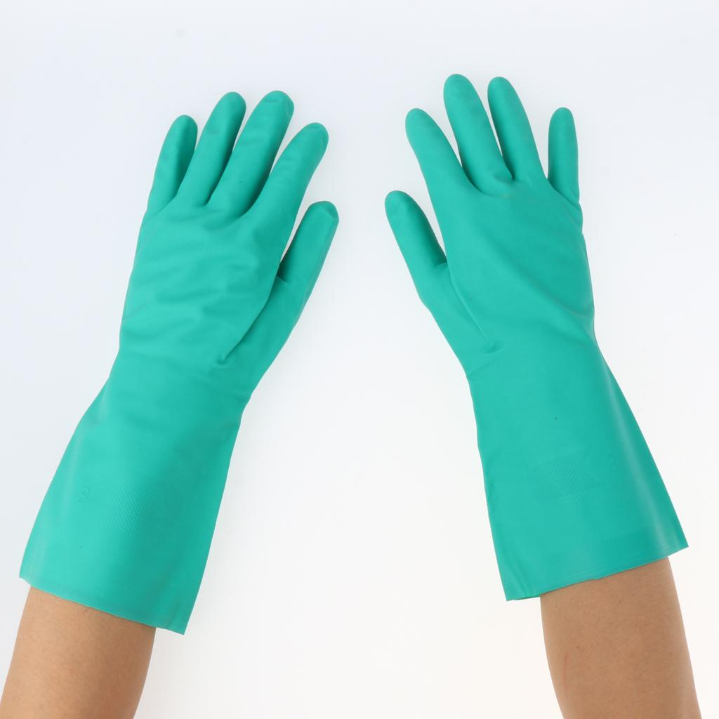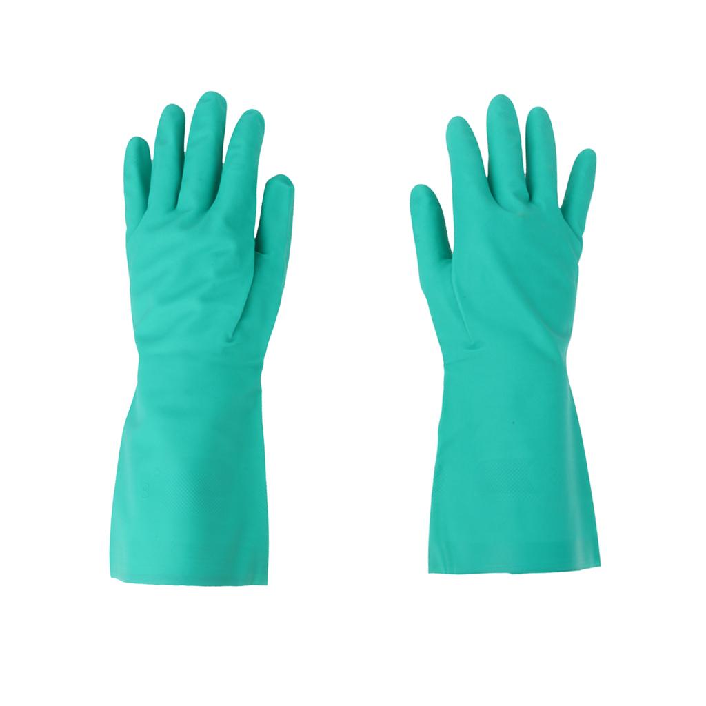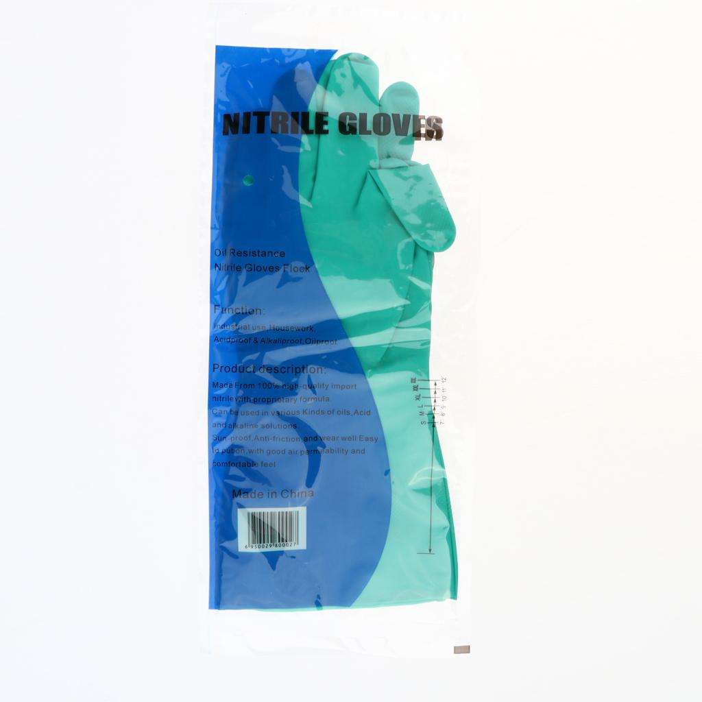 Pair of Green Solvent Oil Resistant Nitrile Rubber Work Gloves M