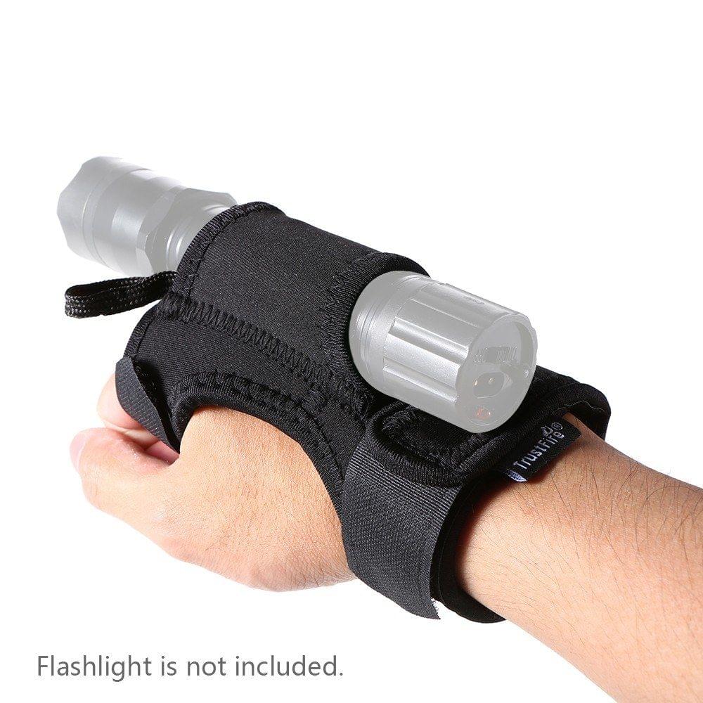 description":"Diving light holder made of soft stretch and comfortable material with adjustable strap to fit your hand, works with diving canister lights, dive lights, flashlights, torch. Suitable for scuba diving, snorkeling,exploring, hunting, camping, hiking and so on. Features: Made of diving fabric, water resistant, corrosion resistance, excellent air permeability. Adjustable fastening tape and anti-slip padding, comfortable to wear. Easy to mount and convenient to use with or without gloves. Can be used on left or right hand. Fits for the diameter of flashlight body is about 25-32 mm/0.98-1.26 inch. Fits for the wrist circumference is about 172-235 mm/6.77-9.25 inch. Works with diving canister lights, dive lights, regular flashlights, torch and so on. Suitable for multiple applications,such as scuba diving, snorkeling, exploring, hunting. Specifications: Material: Diving Fabric Flat Size: 28.5 * 28 * 12cm / 11.2 * 11.0 * 4.7in Package Size: 12 * 5 * 2cm / 4.7 * 1.9 * 0.7in Package Weight: 33g / 1.1oz Package List: 1 * Flashlight Glove Holder