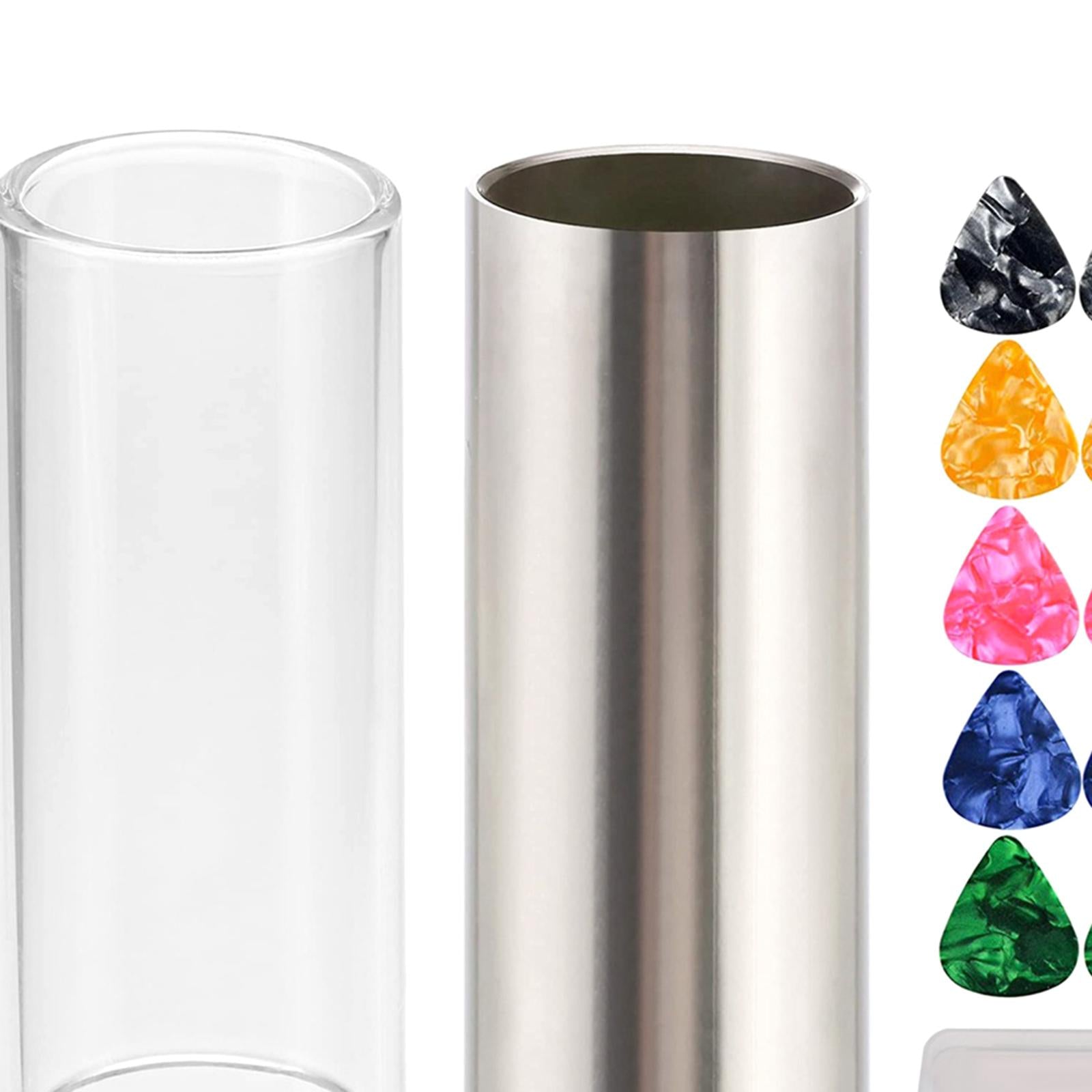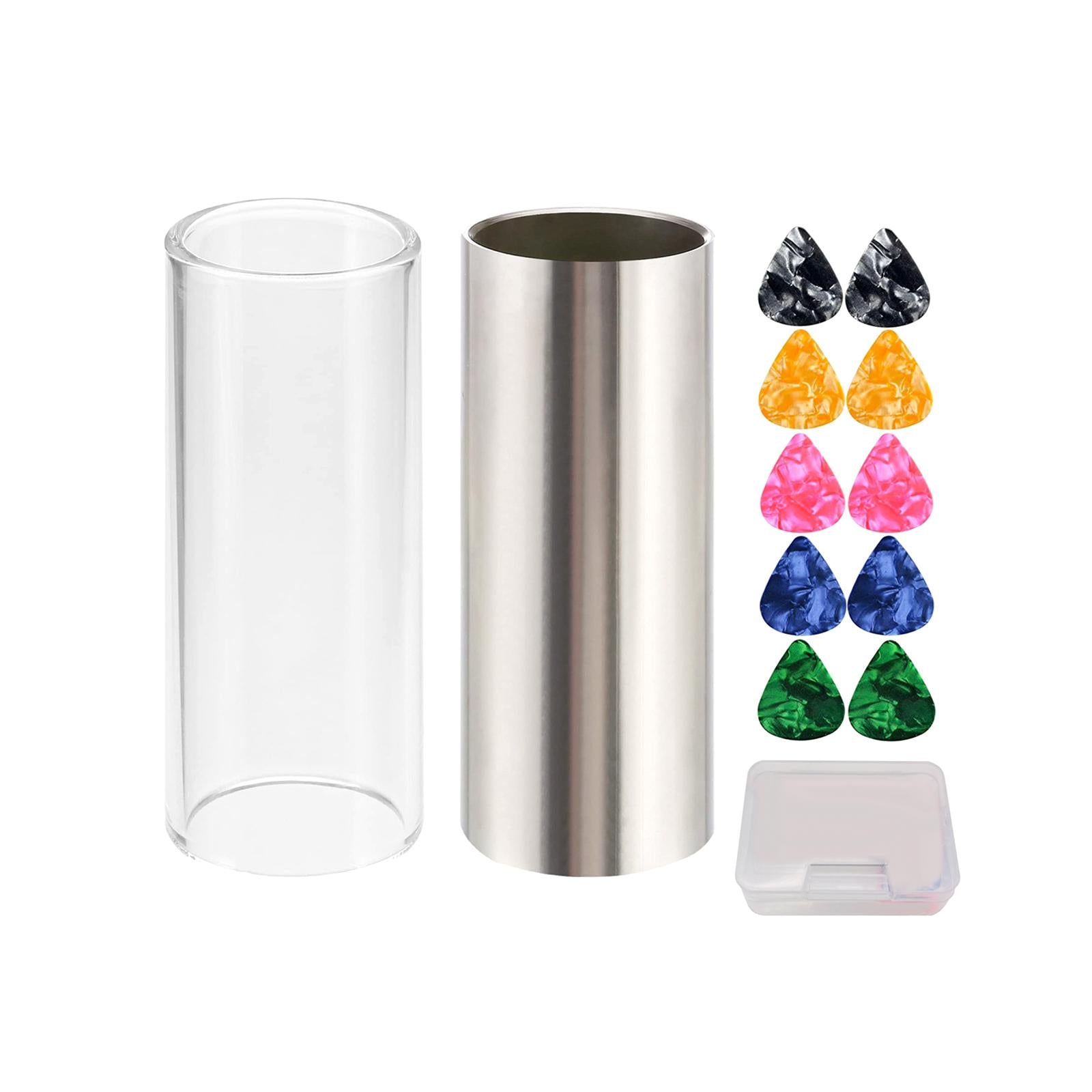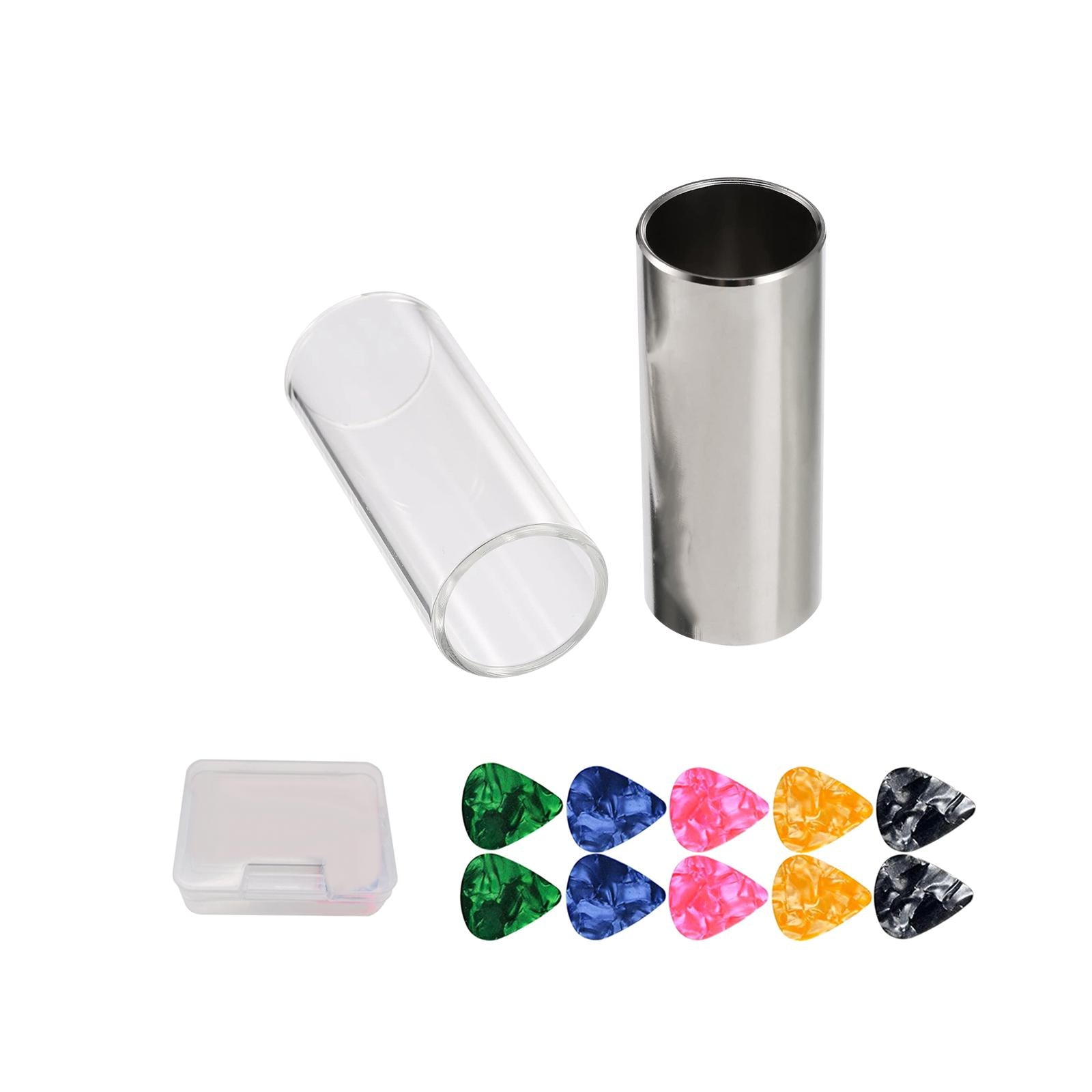 【Package Contents】2 medium guitar slides 10 guitar picks accessories.