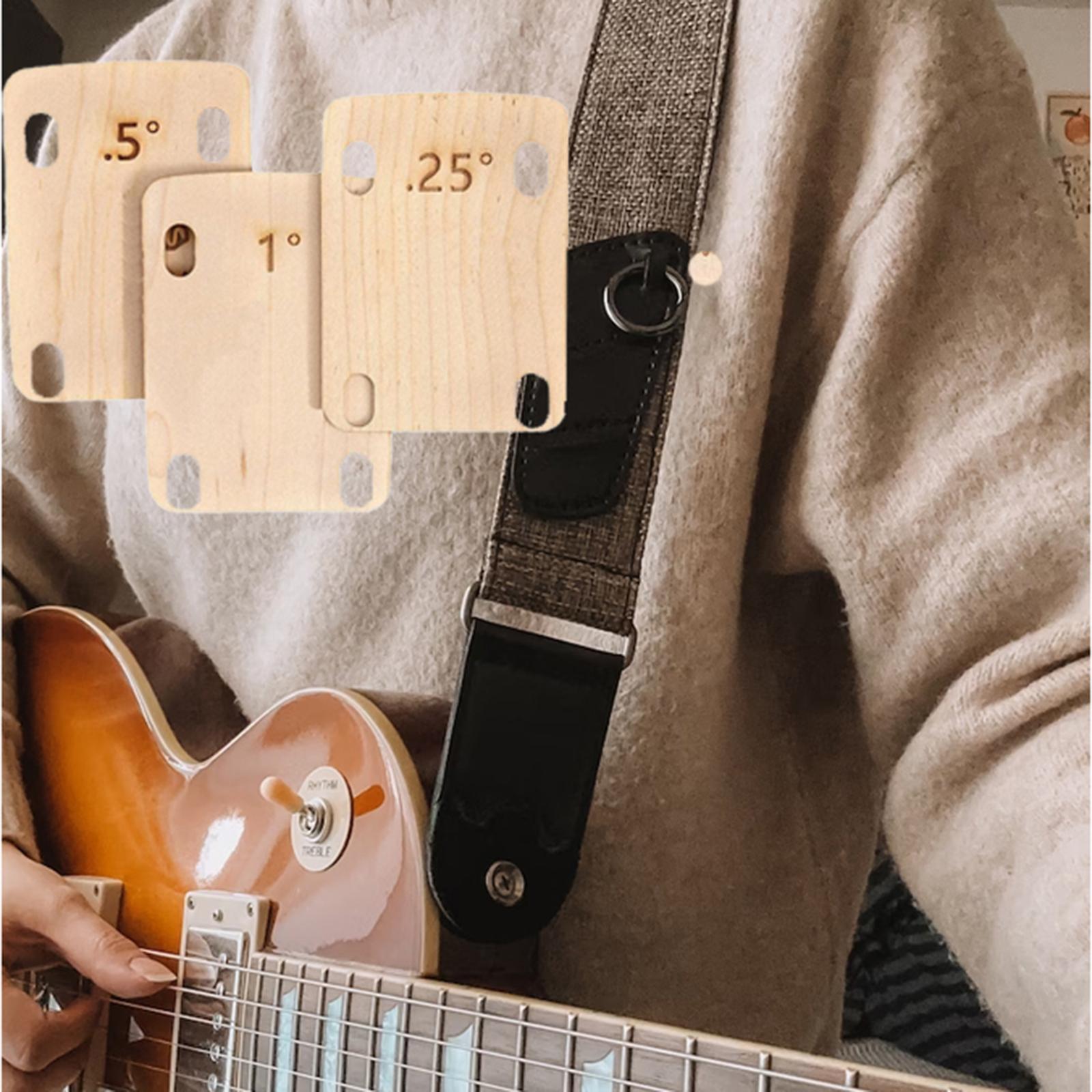 【Details】: The 0.25 degree shims offer the greatest versatility, stacking them allow you to really dial in the neck angle you want. 0.5 degree taper is the taper you'll use most often, it works well on electric guitar and many other solid guitars.