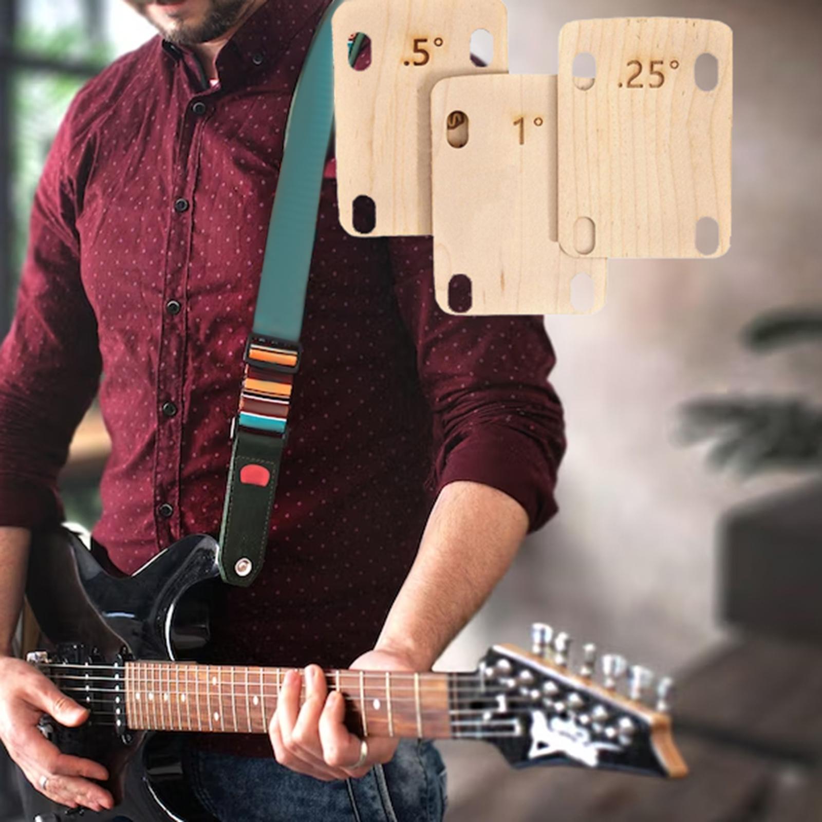GUITAR NECK SHIM: 3 guitar neck plate gasket cushion shim pads, respectively 0.25 degree, 0.5 degree, 1 degree neck pads.