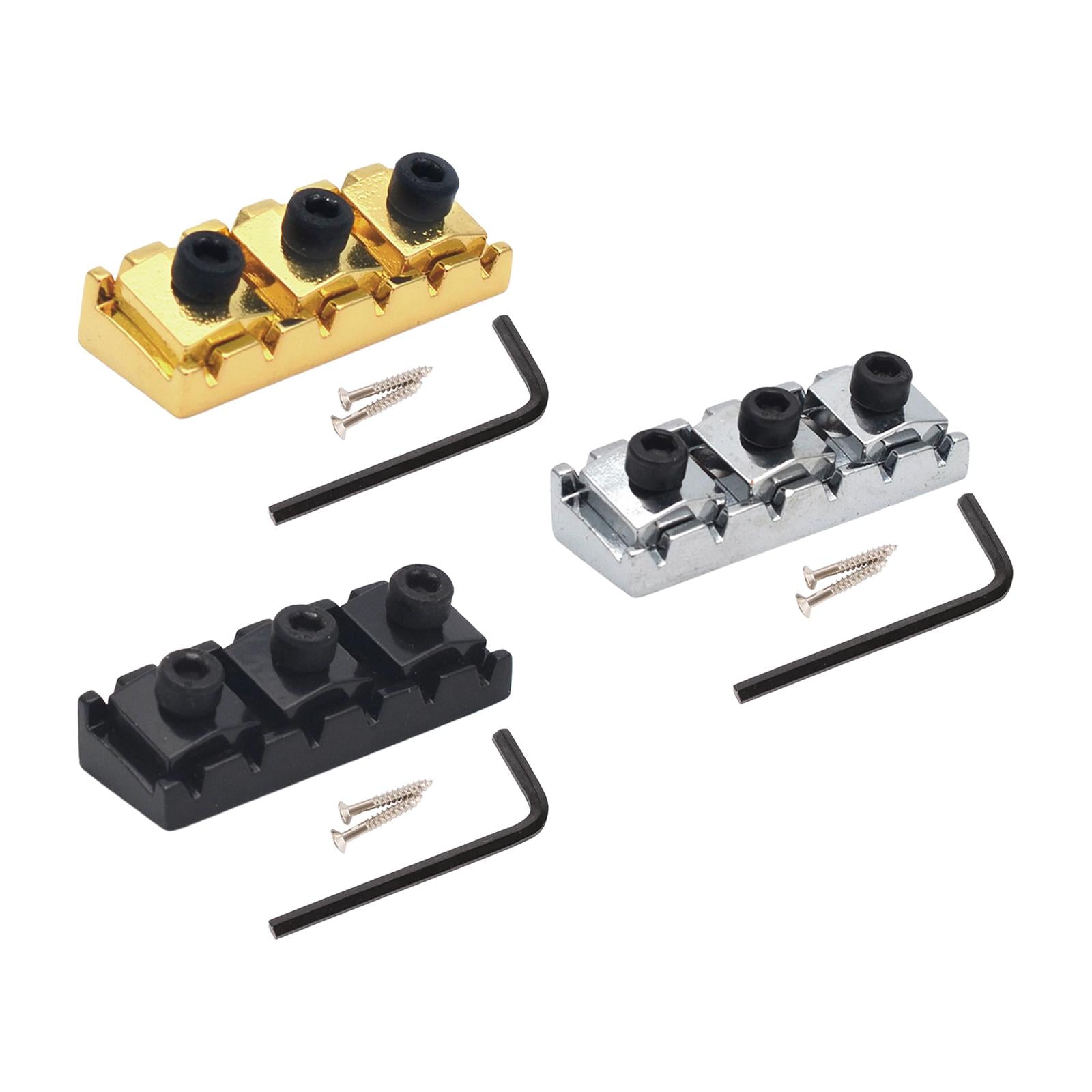 Features: Fits 6 strings electric guitar with 43mm neck at the nut, can be used with your double lock system, which reducing string friction to save the strings.