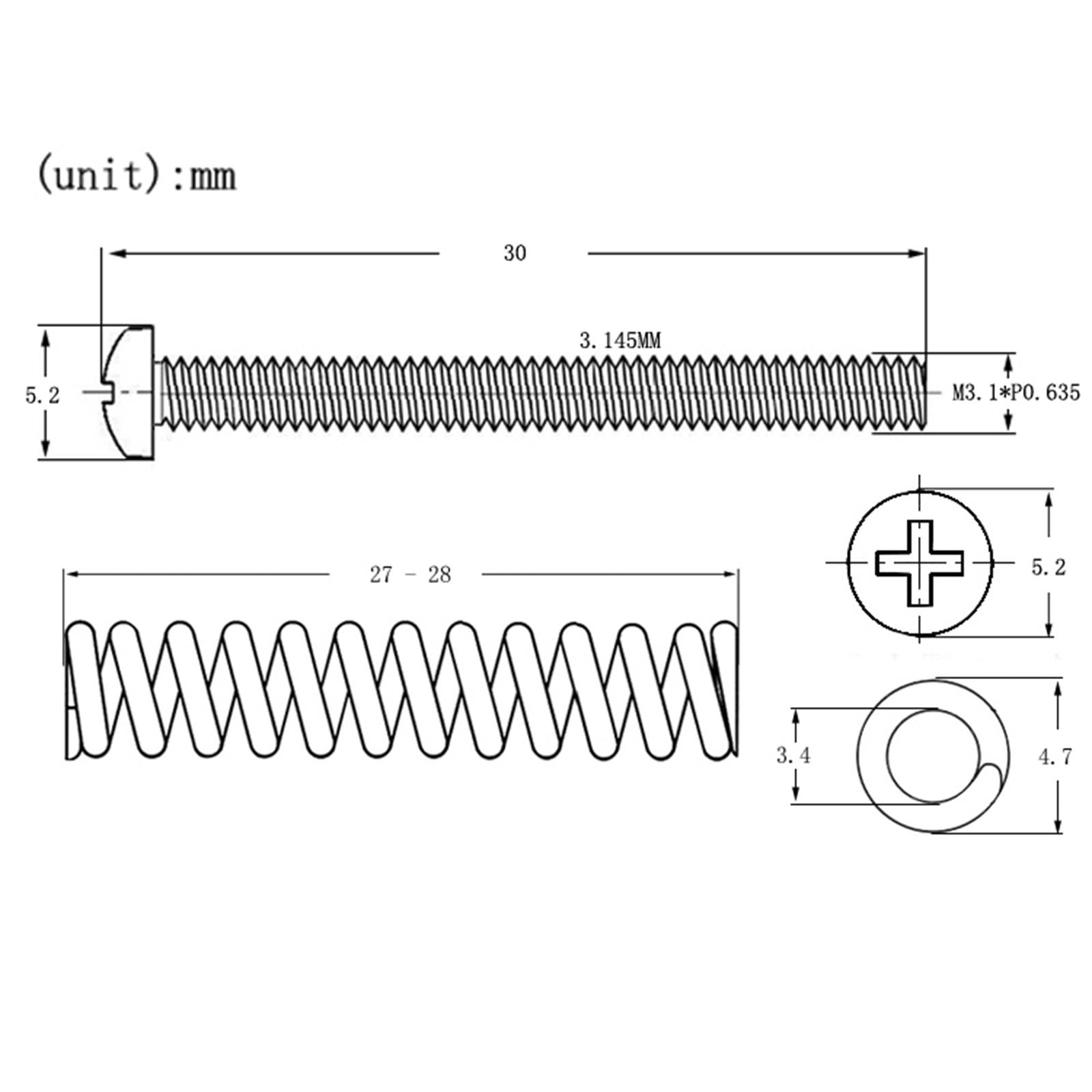 Screw:3.03-3.145mmx30mm/0.12inch-0.12inch/1.18inch