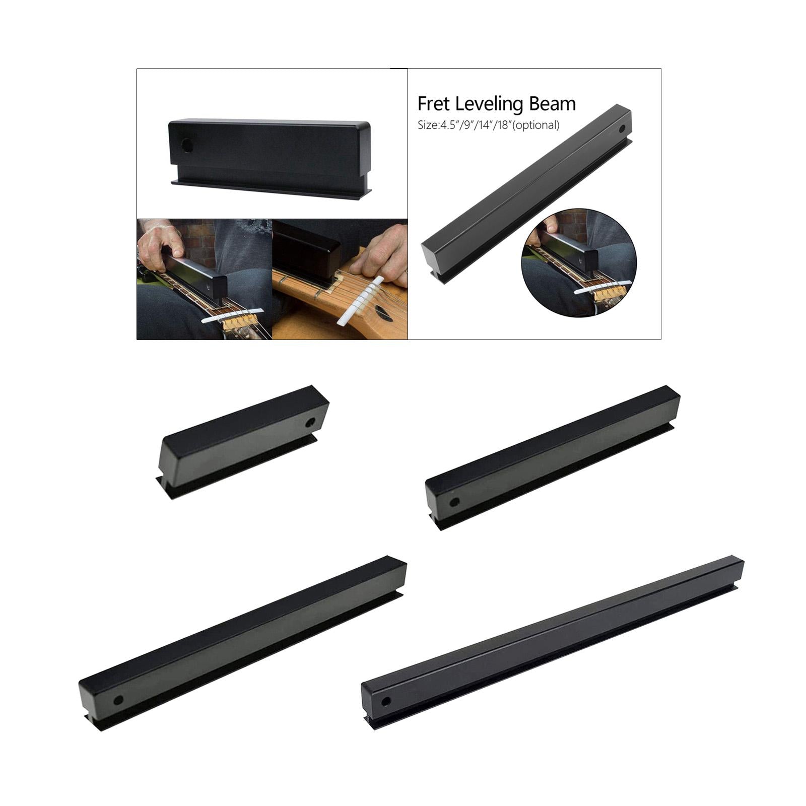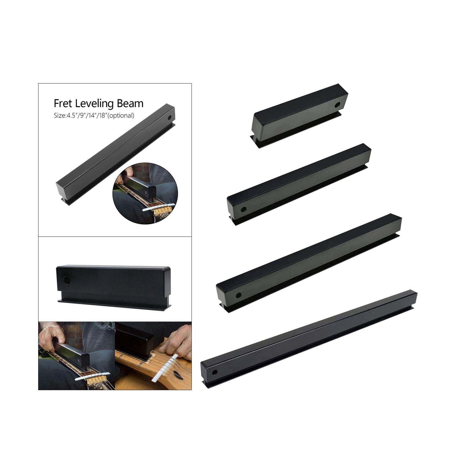 【file bar】 The 4.5" (114mm) length is ideal for spot leveling of the frets across the entire neck. It's also great for creating backs on acoustic guitar. 9" long (228mm) designed for smaller necks like ukuleles and mandolins. It is also suitable for leveling diatonic necks and spot leveling. 18" long (457mm) allows easy leveling of the entire neck.
