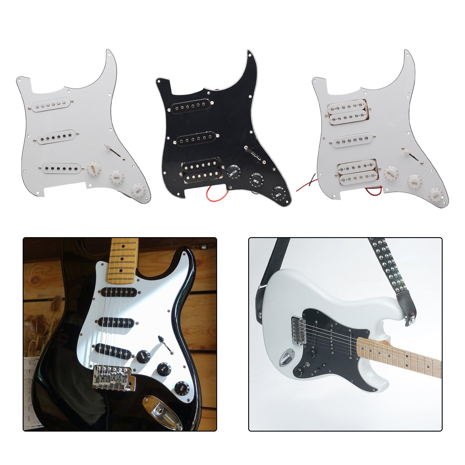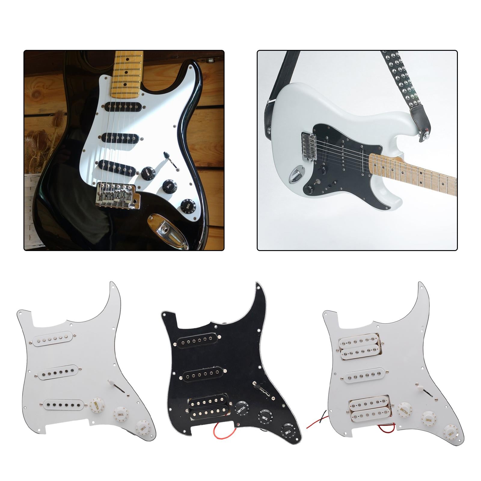【Design】Electric Guitar Pickguard Scratch Plate, Five way switch, 2 volume and a tone adjustment button. Comes with a full set of knobs, switches, pickups and pre wired circuitry.
