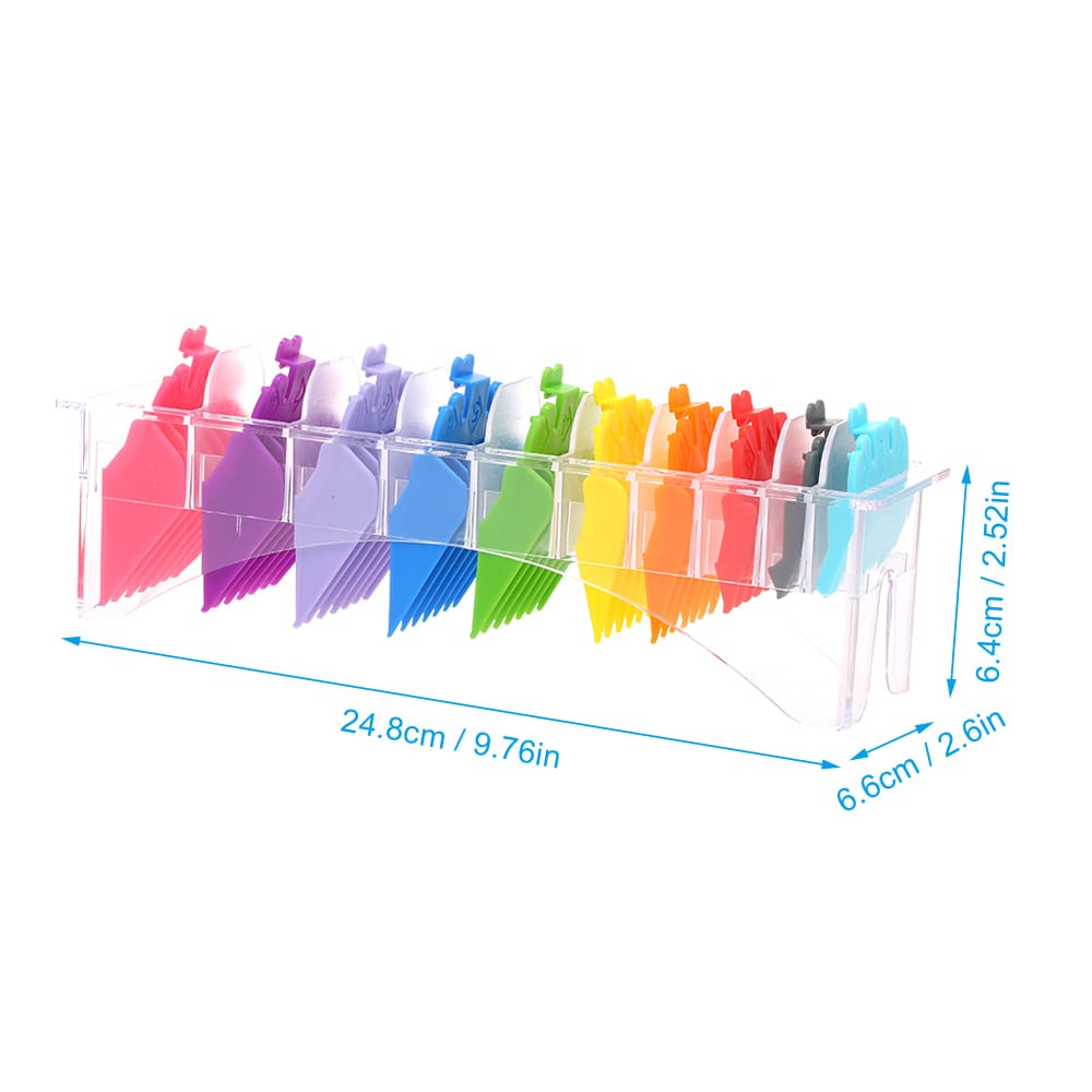 This colorful hair clipper comb guide kit is easy to use and perfect for hair salons. It includes a plastic clipper comb organizer to help keep your combs neat and organized. Why not give it a try?