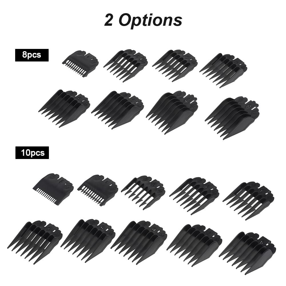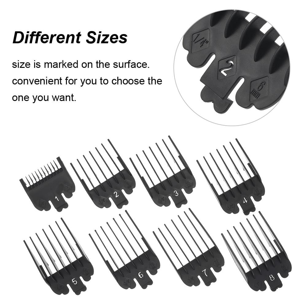 Description:These hair clipper combs guide are easy to use. Suitable for particular hair clippers. Come and have a look.Features:Comes in black including 8 / 10 pieces in different sizes meeting your different needs.Reliable quality made of premium ABS material sturdy and durable.A great hair clipper combs guide kit for barbers and hair stylists.Simple design convenient for you to attach it with your clipper.Washable you can clean it up after use with running water.Specifications:Type: Hair Salon ToolMaterial: ABSColor: BlackQuantity: 8pcs 10pcs (Optional)Item Size:(8pcs): 3mm(1/8in) 6mm(1/4in) 10mm(3/8in) 13mm(1/2in) 16mm(5/8in) 19mm(3/4in) 22mm(7/8in) 25mm(1in)(10pcs): 1.5mm (1/16in) 3mm(1/8in) 4.5mm (3/16in) 6mm(1/4in) 10mm(3/8in) 13mm(1/2in) 16mm(5/8in) 19mm(3/4in) 22mm(7/8in) 25mm(1in)Package Size: Approx. 18.5 * 11 * 4cm / 7.28 * 4.33 * 1.57inPackage Weight: (8pcs): Approx. 58g / 2.05oz(10pcs): Approx. 65g / 2.29ozPackage List:8 * Hair Clipper Guide Combs10 * Hair Clipper Guide Combs
