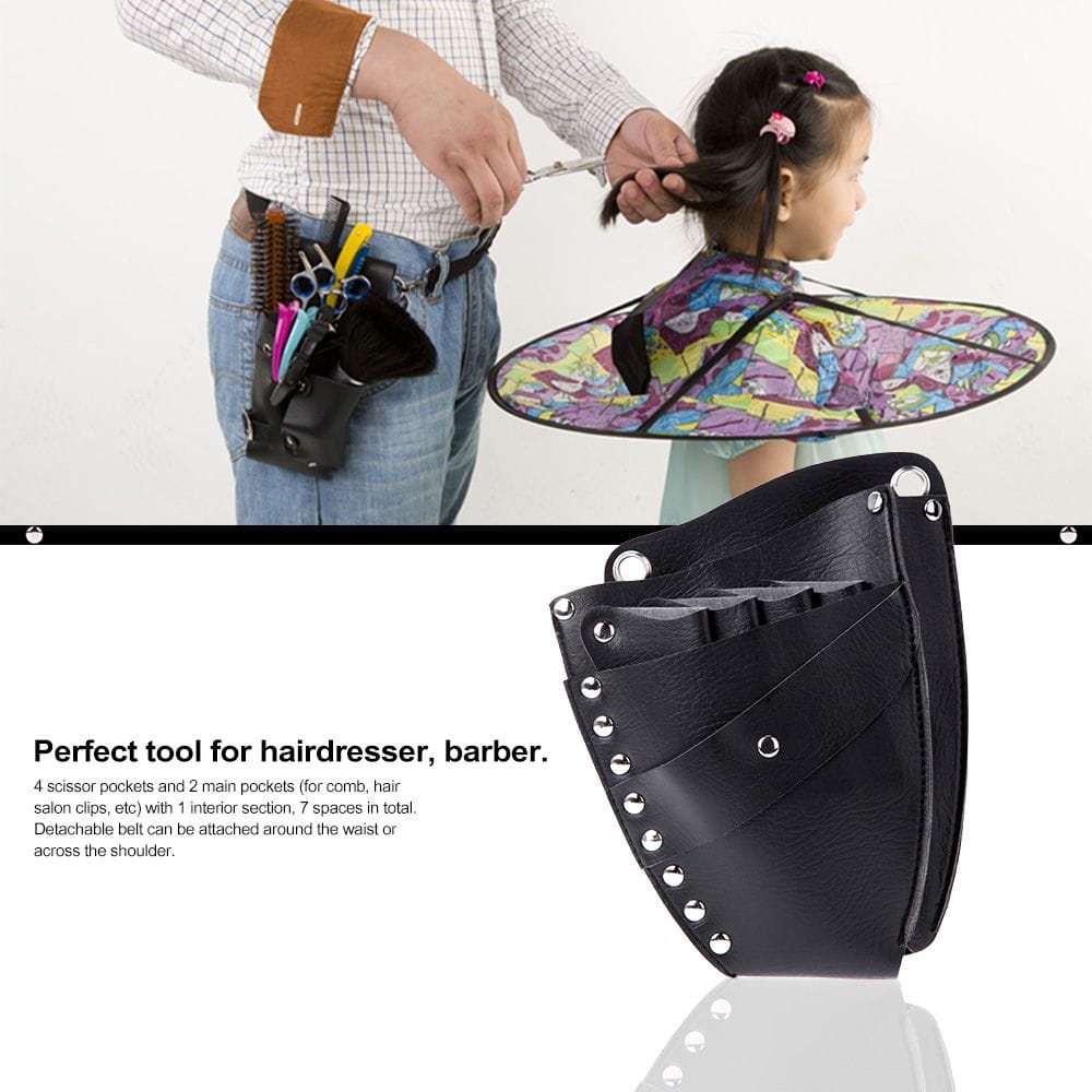Features:Perfect tool for hairdresser barber.4 scissor pockets and 2 main pockets(for comb hair salon clips etc) with 1 interior section 7 spaces in total.Detachable belt can be attached around the waist or across the shoulder.Help to keep your most important tools at your side all the time.Lightweight compact and strong and can hold all your necessities.Looks neat and very smart.Specifications:Material: PU LeatherColor: BlackQuantity: 1PcsItem Size: About 21 * 17 * 5cm / 8.3 * 6.7 * 2inPackage Size: 24 * 19 * 5cm / 9.4 * 7.5 * 2inTotal Weight: 175g / 6.17ozPackage List:1 * Hair Scissor Bag