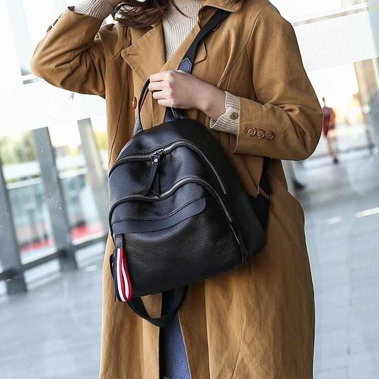 1. Color: Black, pink 2. Material: PU 3. Can store glasses, mobile phones, wallets and other personal belongings 4. Multi-function: Double shoulders / one shoulder / hand / crossbody 5. Size: 30x25x12cm, weight: 450g 6. Casual fashion, suitable for ladies to go to work, shopping, travel