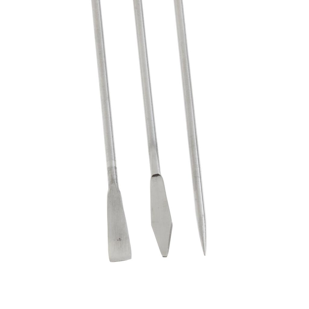 Square head spatula with a flat end and a spoon end for transferring and handling powder and granular materials