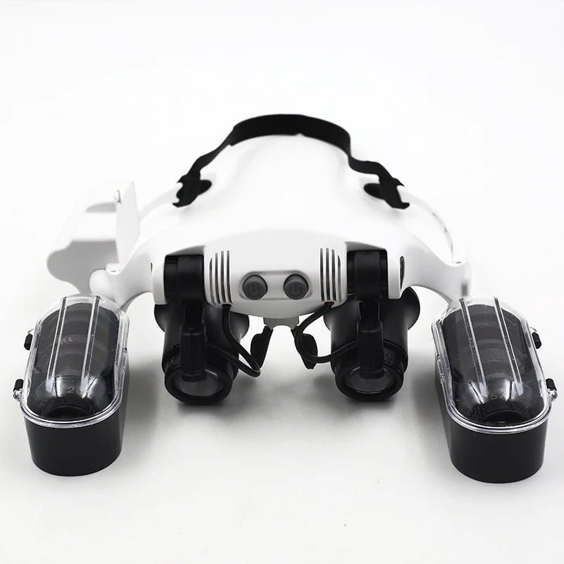 Elastic headband and lightweight frame to ensure more comfortable and tight wearing.2 LED lights to help work in low-light conditions.