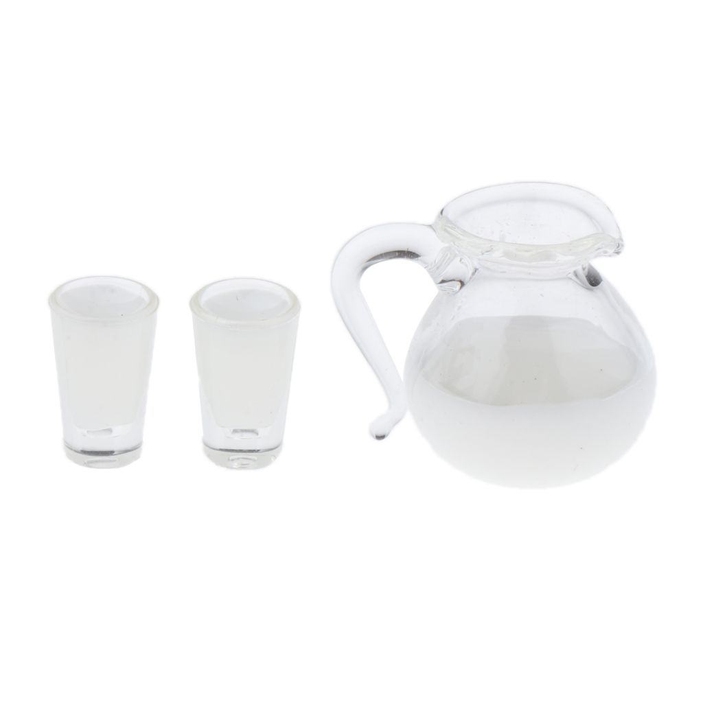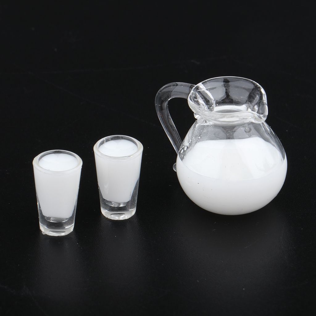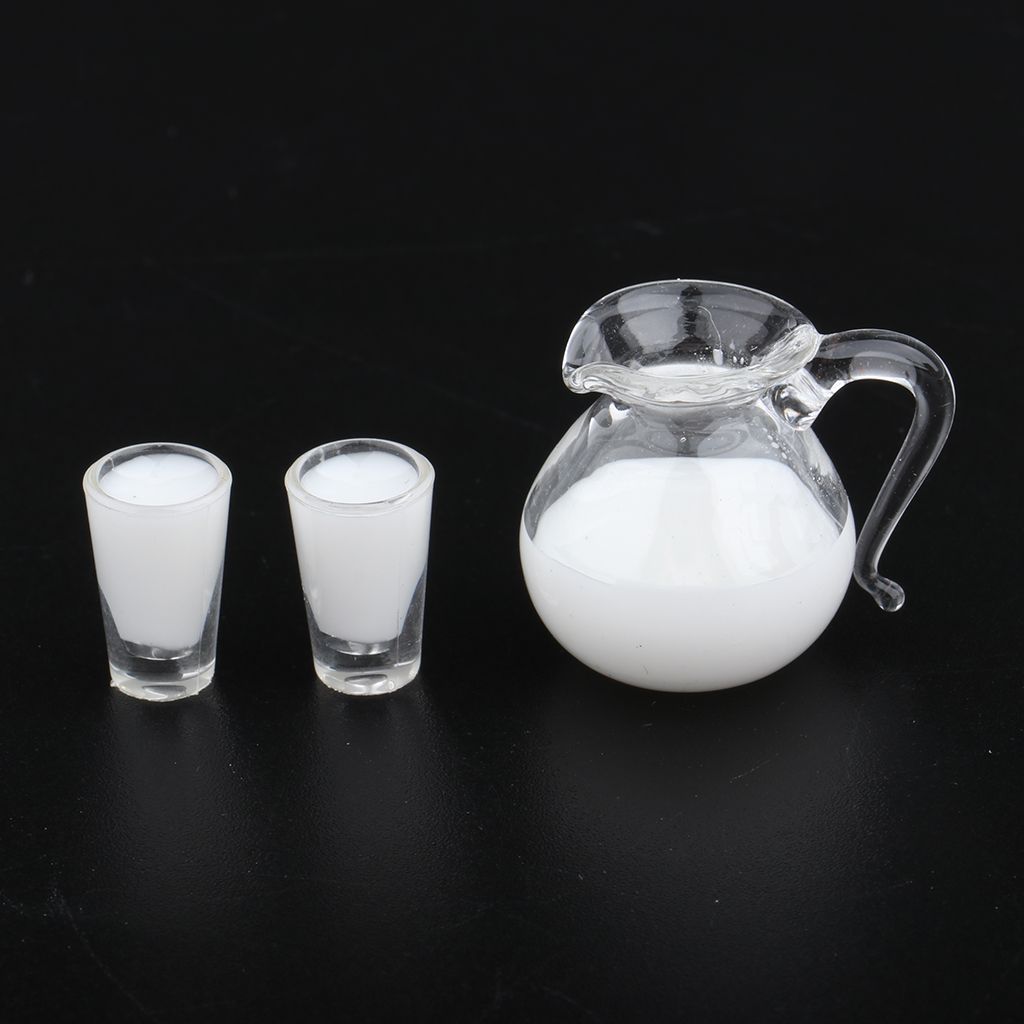 - 1/12 Dollhouse Miniature Milk/Juice Bottle and Cups Model Kitchen Food Decor