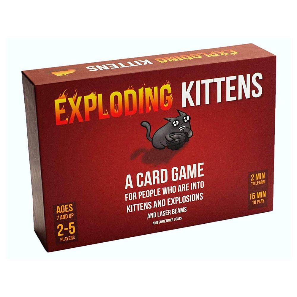 The card game of Exploding K-itten red version is a highly-strategic kitty-powered version of Russian Roulette. If you are looking for board games for adults but want to p-lay fun games with children this is the perfect holiday gift.Features:Exploding Kittens is a card game for people who are into kittens and explosions and l-aser beams and sometimes goats.Players draw cards until someone draws an Exploding K-itten at which point they explode they are dead and they are out of the game.Unless that player has a Defuse card which can defuse the K-itten using things like l-aser pointers belly rubs and catnip sandwiches.All of the other cards in the deck are used to move mitigate or a-void the Exploding Kittens.Suitable for 2 to 5 players ages 7 and older.Specifications:Material: PaperPackage Weight: 220g / 7.76ouncesPackage Size: 161 * 112 * 39mm / 6.34 * 4.41 * 1.54inPacking List:56 * Card