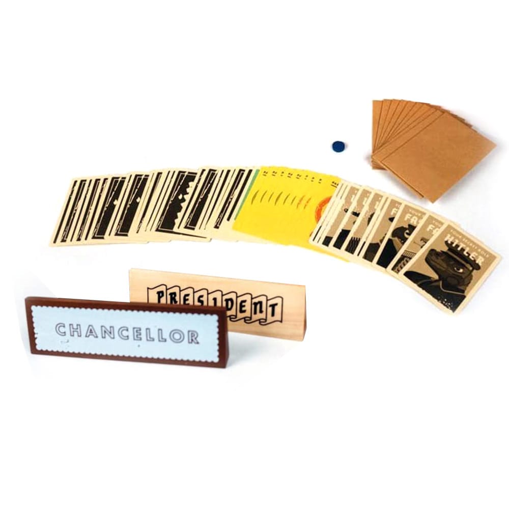 The card game of Secret Hitler is perfect party game to find and stop the Secret Hitler funny and excited card game for ages 17 and older.Features:A game that tests intelligence and emotional intelligence.A fast-paced game full of betrayal and deception.A social deduction game for 5-10 players about finding and stopping the Secret Hitler.Each player is randomly and secretly assigned to be a Liberal or a Fascist and one player is Secret Hitler.Perfect board game to p-lay with friends adults games night at a party office party dinner party etc.Specifications:Material: PaperPackage Weight: 860g / 30.34ouncesPackage Size: 380 * 152 * 53mm / 14.96 * 5.98 * 2.09inPacking List:3 * Hard Board1 * Pair of Copper Playing Cards 421 * Set of 17 Grey Boards2 * Quick Wood1 * Small Round Wood10 * Kraft Envelopes1 * Manual