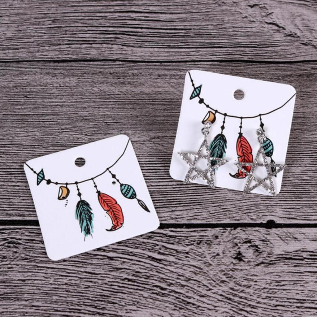 100pcs Jewelry Display Cards Earring Ear Studs Hanging Holder 3 Feathers