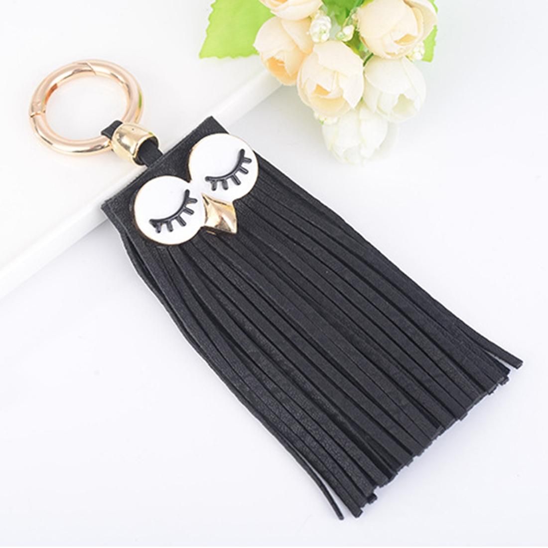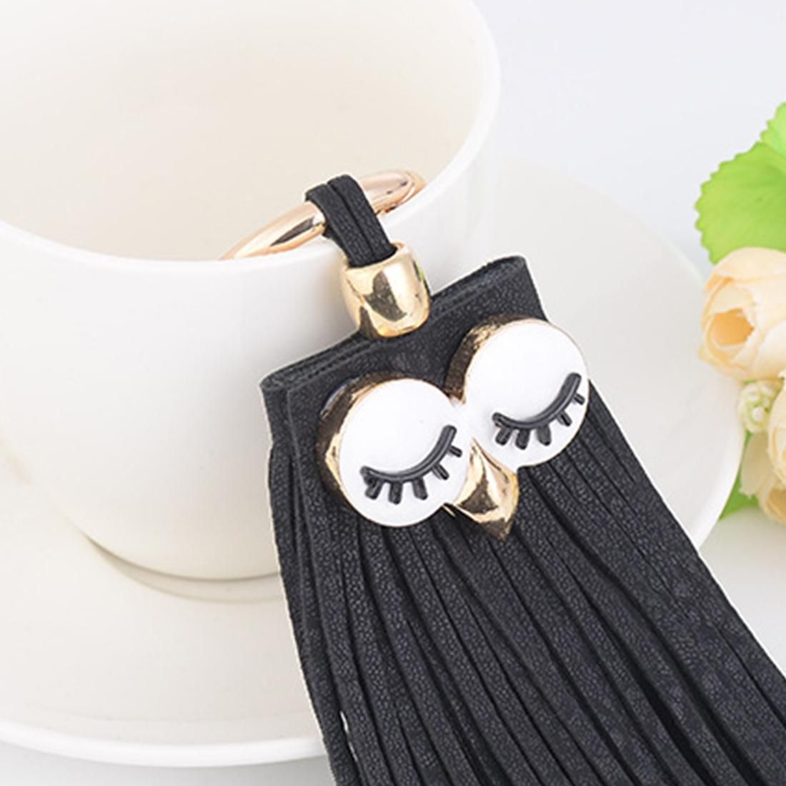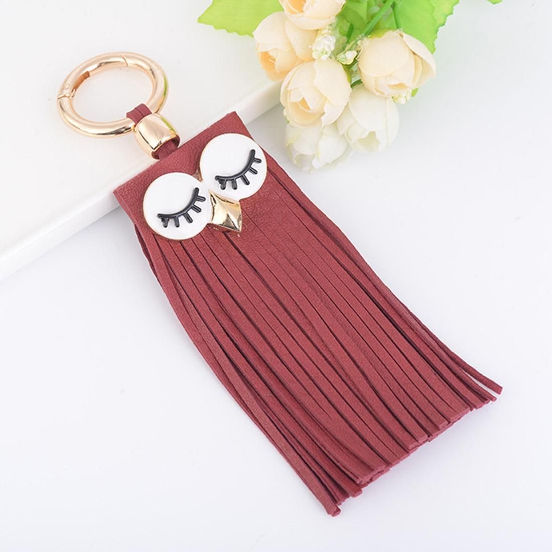 Fashion Casual PU Leather Tassels Women Key Chain Bag Pendant Car Key Chain Ring Hanging Holder Creative Personality Owl Tassel Car Key Ring Bag Ornaments Pendant (Red)