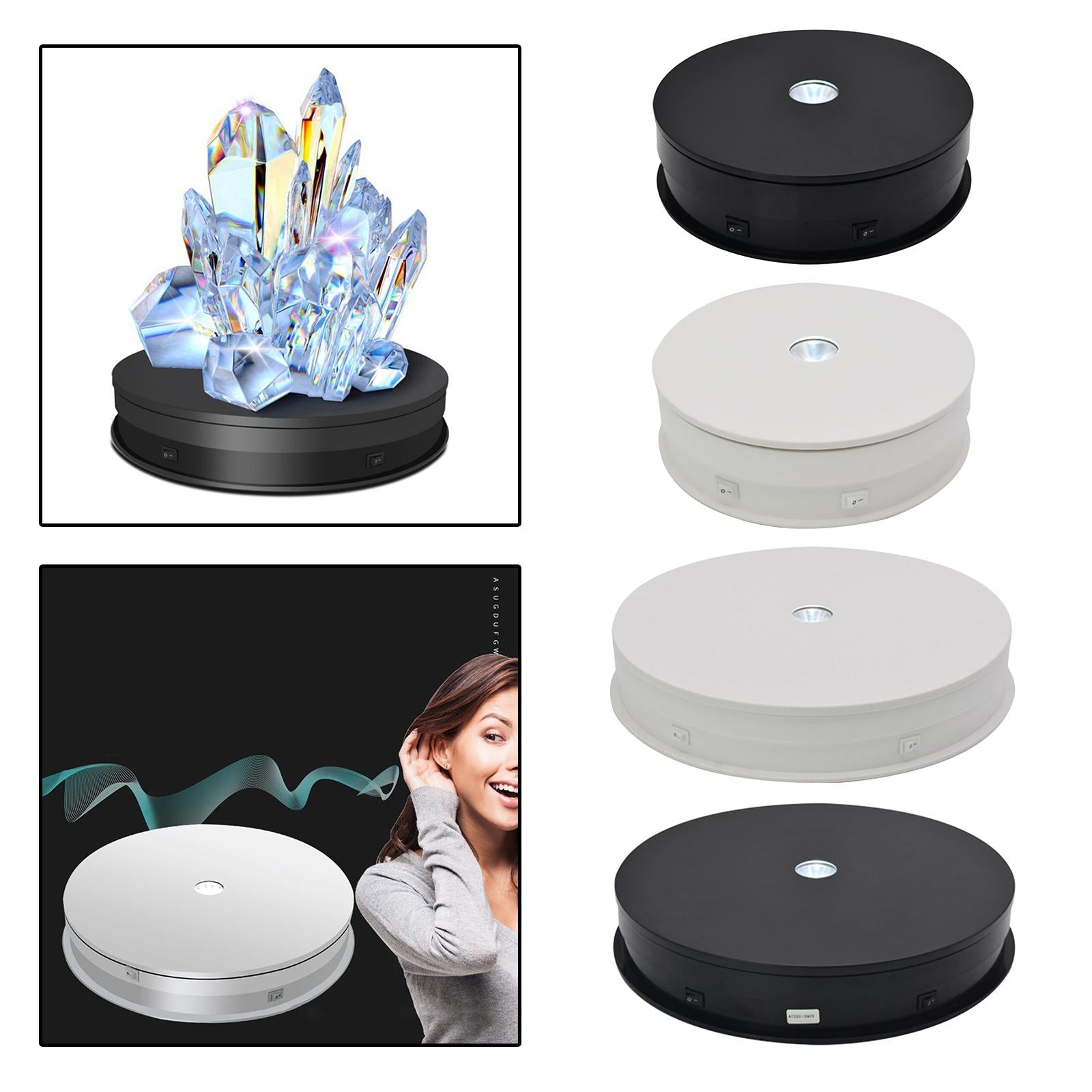 Unique Rotating Electric LED Display Stand Base Jewelry Watch 20cm White