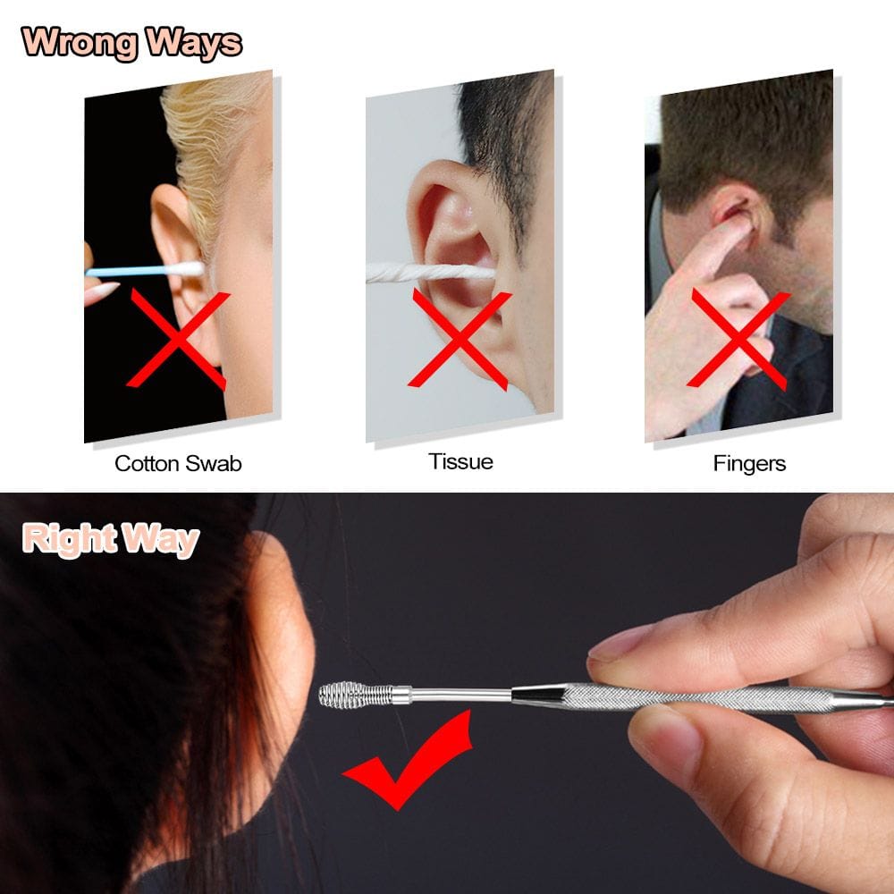 Description:2Pcs stainless steel earpick spiral spring type effectively to remove ear wax.Features:Stainless steel earpick rustless durable.Spiral spring type earpick easy and effective to dig out ear wax.Anti-slip design with elegant appearance do not hurt your ear.Very easy to use and convenient to clean.Include 2 earpicks suitable for family use healthy and comfortable.Specifications:Material: Stainless SteelType: EarpickAge Group: AdultsQuantity: 2pcsItem Weight: Approx. 6.2g / 0.2oz(1pc)Package Size: Approx. 11.5 * 2.9 * 1.0cm / 4.5 * 1.1 * 0.4inPackage Weight: Approx. 12.6g / 0.4ozNote:For the sake of your ear safety please do not put the earpick too deep into your ear-hole.Please clean the earpick with tissue after every time use.Package List:2 * Spiral-type Earpicks