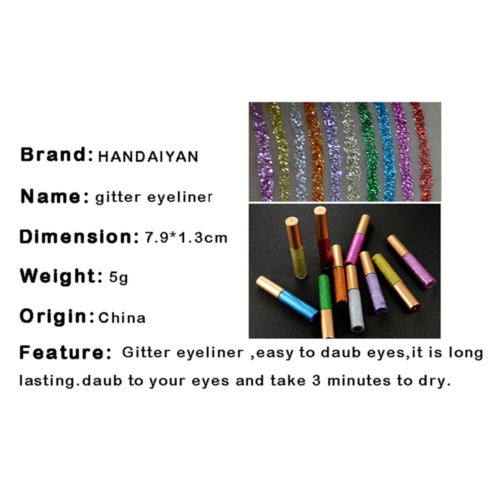 Easy to Apply and Clean: The eye glitters are very lightweight and not greasy at all.Goes on continuously without skipping, pulling or smudging. Meanwhile, it's easily to remove and clean eyeliner with eye remover, never worry about pigmentation.