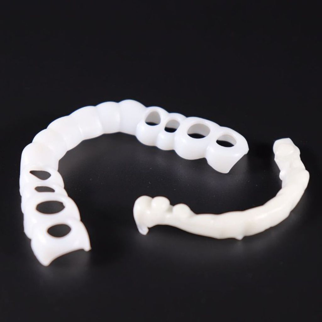 - -A special mould works to disguise crooked, stained, missing and gapped teeth.