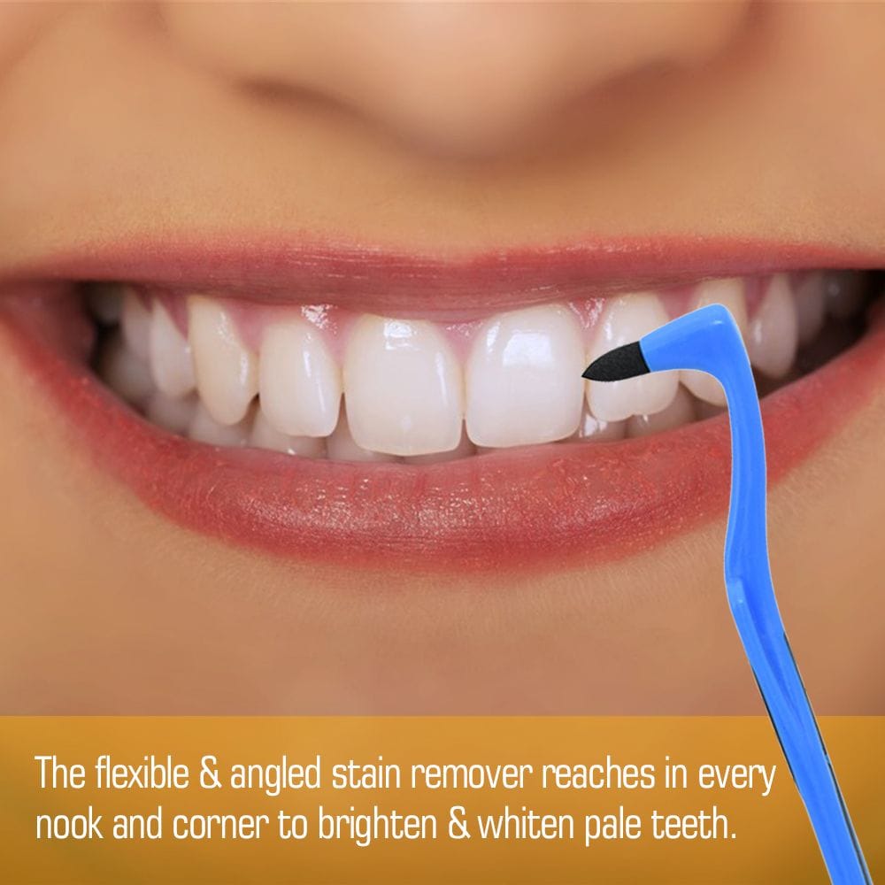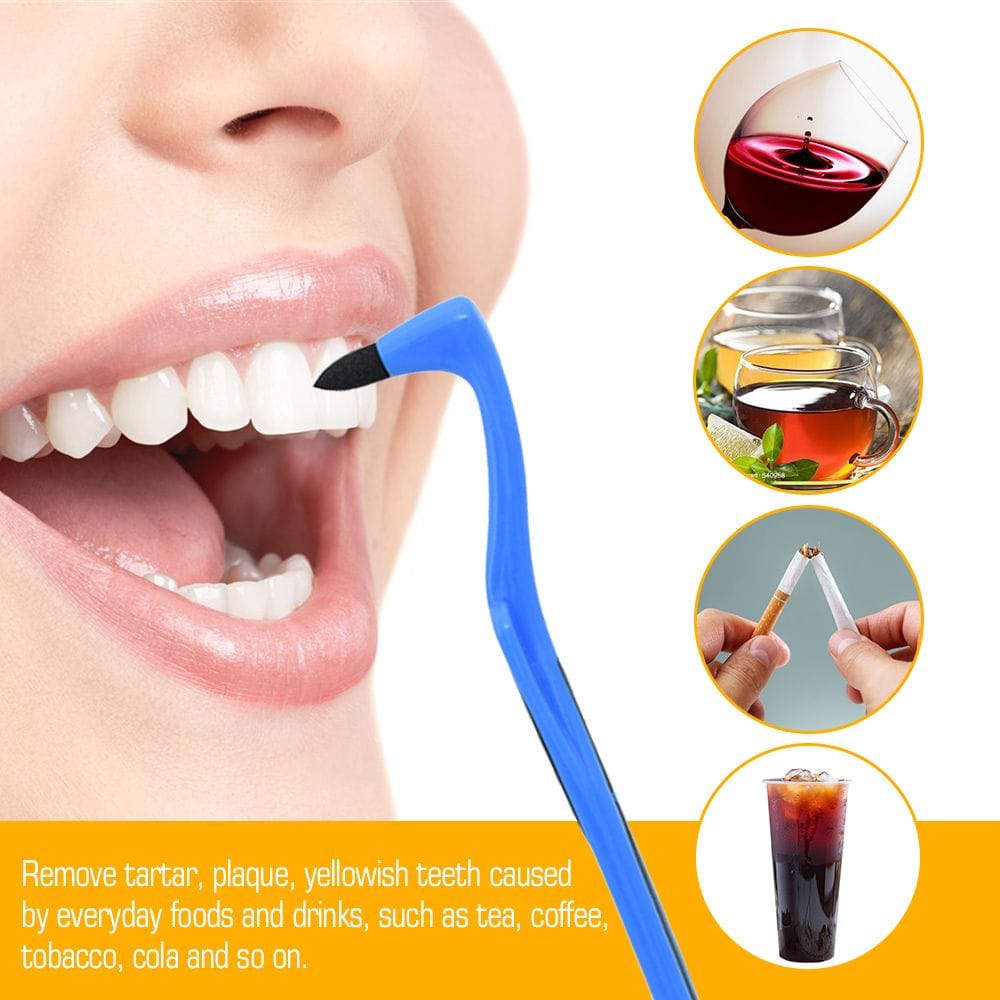 The flexible and angled stain remover reaches every nook and corner to brighten and whiten pale teeth. It is highly effective in removing plaque, tartar, dental calculus, and food particles between teeth. This tool helps remove tartar, plaque, and yellowish stains caused by everyday foods and drinks such as tea, coffee, tobacco, cola, and more. Don’t hesitate – buy it now!