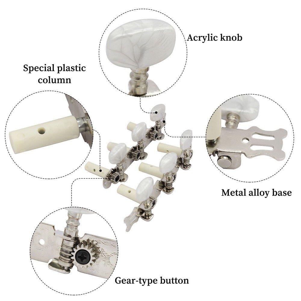 description":"Features: 2 pieces of the classical guitar tuner pegs in one set will be sold together (one is for left and the other is for right). Material: Made of metal alloy base and special plastic column, very duarble in use. Standard 35mm between pegs, universal for classic guitar. Ideal to replace your old and dirty tuning pegs and great for guitar tuning. Features the hook-ups of gear-type buttons. They has elegant appearance, which can also act as delicate decorative pieces for your guitar. Easy to use. Specifications: Main Material: Metal alloy and plastic Color: Gold, Silver(Optional) Compatible Instrument: Classical guitar Item Size (1pc): 12 * 3.7 * 4cm / 4.7 * 1.5 * 1.6inch Item Weight (2pcs): 130g / 4.58oz Package Size: 14 * 5.7 * 4cm / 5.5 * 2.2 * 1.6inch Package Weight: 131g / 4.62oz Package List: 2 * Classical Guitar Tuning Pegs