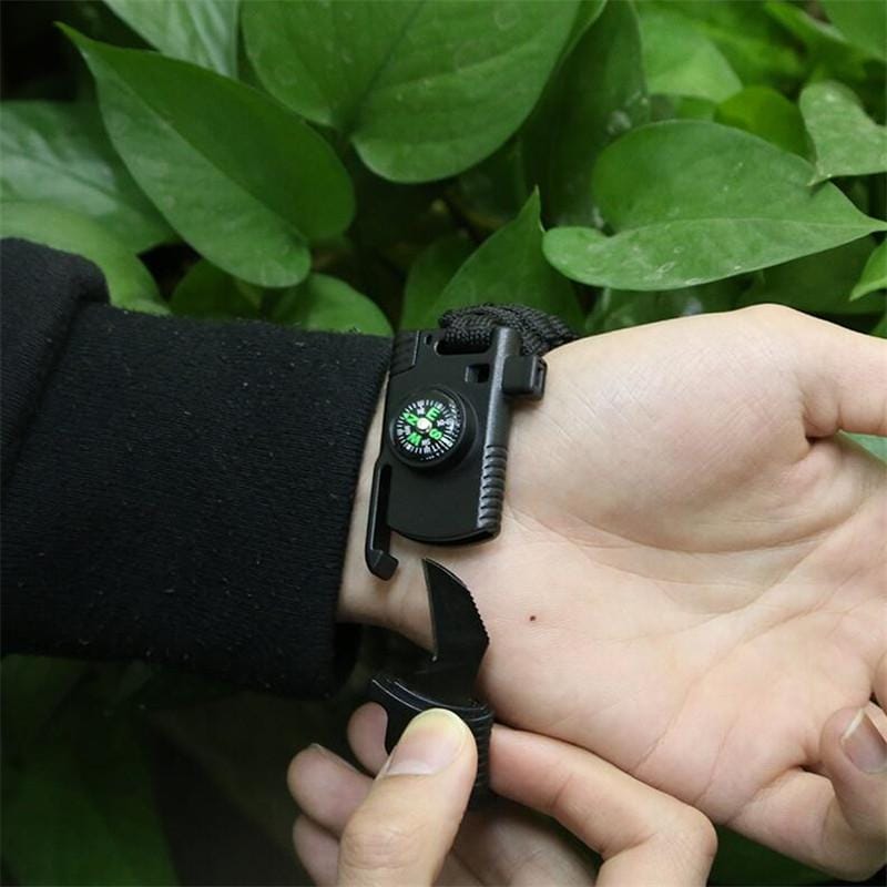 1. 5 in one, this is not an ordinary rope bracelet, it has more outdoor survival functions: take flint, high-precision mini compass, cut rope knife, survival whistle, and a 7-core umbrella about 32 meters long Rope for your outdoor exploration. 2. The bracelet is 2.5 cm wide and 23 cm long (effective wearing length after the buckle is closed). 3. Bracelet accessories suitable for everyday wear, highlighting the identity of your outdoor players, can be taken apart as a section Used for the rope. 4. Use the seven-core umbrella rope to stop bleeding, make traps, and bundle in an emergency. Temporary tents, wearing equipment to prevent loss and so on. 5. Can be used for emergency help. The rope is 4 mm in diameter and the single rope pull is around 350 pounds. The bracelet has a total length of about 36 meters and is used for trailers and first aid. 6. The materials used are all made of parachute rope, which is the same as the rope used for sea vessels. It has the advantages of corrosion resistance and anti-aging.