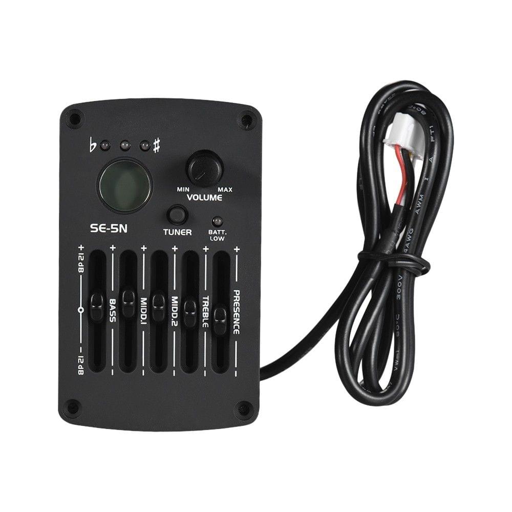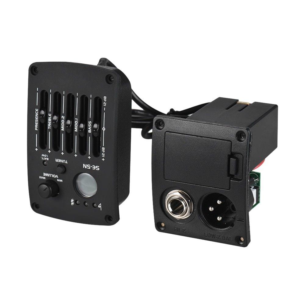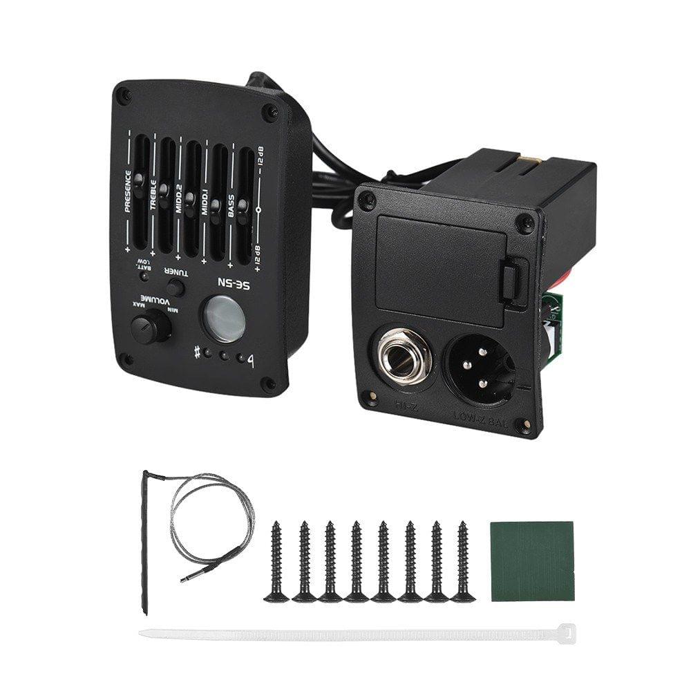 description":"Features: Pickup with 5 bands EQ, it is suitable for classical folk guitars. Bass, middle 1, middle 2, treble and presence control knobs. Built-in tuner with LED display. With 6.35mm & XLR output jacks for connecting the speaker. Powered by one 9V battery and with low battery indicator (battery is not included). Specifications: Pick-up: Piezo Ceramic Pick-up Input impedance: 10MΩ Frequency Response: 20Hz-20KHz Control Range: Bass: (+/-)12dB at 60Hz, Middle: (+/-)12dB at 450Hz, Middle: (+/-)12dB at 2KHz, Treble: (+/-)12dB at 3.5KHz, Presence: (+/-)12dB at 10KHz Output Jack: 6.35mm & XLR output jacks Power Supply: 1 * 9V battery(not included) Item Size: 7.7 * 4.6 * 2.5cm / 3.0 * 1.8 * 0.98in; 5.5 * 4.5 * 5.5cm / 2.2 * 1.8 * 2.2in Item Weight: 72g / 2.5oz; 36g / 1.3oz Package Size: 17.3 * 11.5 * 4.5cm / 6.8 * 4.5 * 1.8in Package Weight: 118g / 4.1oz Note: Battery is not included. Package List: 1 * Guitar Pick-up System