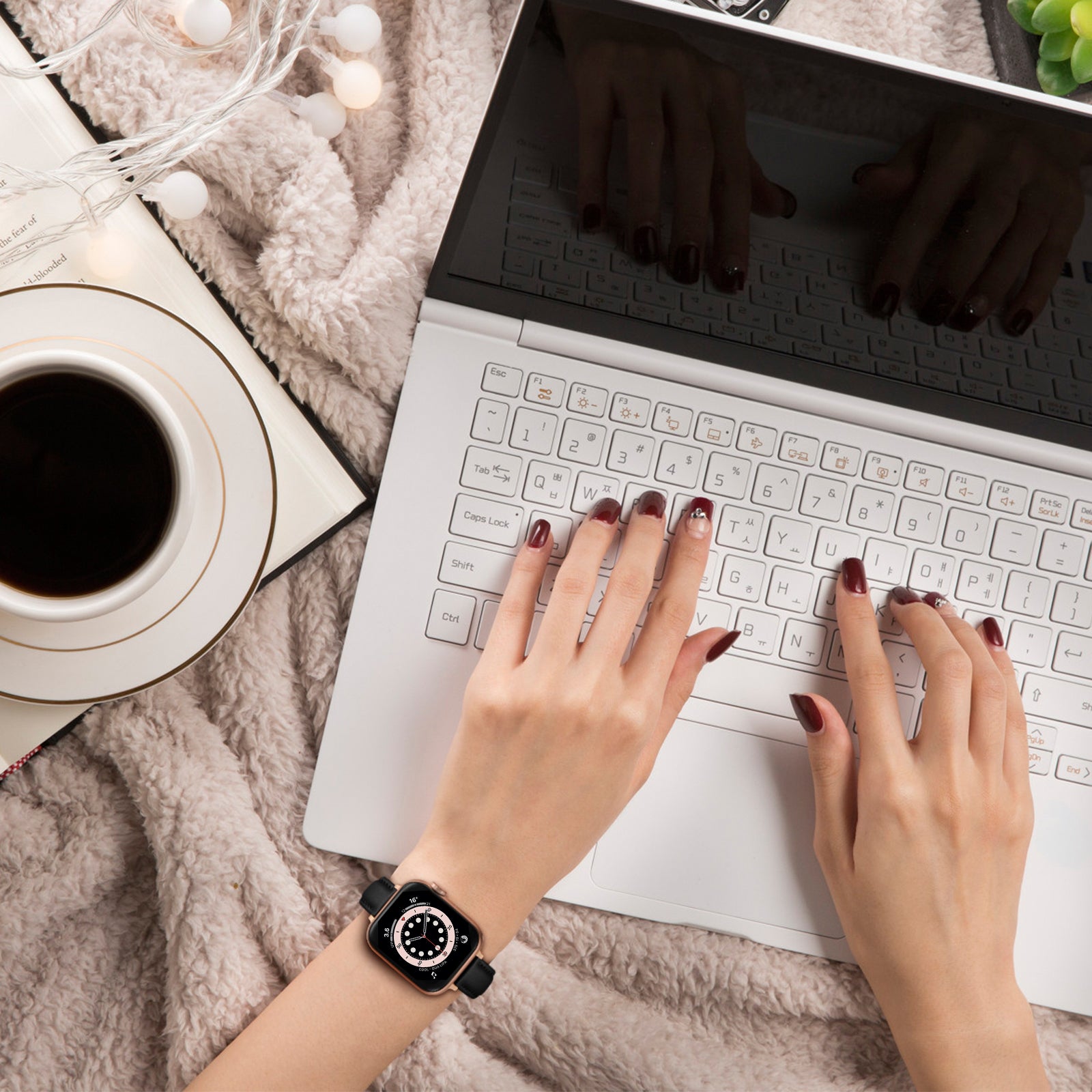 Genuine Leather Replacement Smart Watch Band Adjustable Wrist Strap for Watch Ultra 49mm / Series 8 / 7 45mm / Series 6 / 5 / 4 / SE / SE (2022) 44mm / Series 3 / 2 / 1 42mm - Black / Rose Gold Buckle