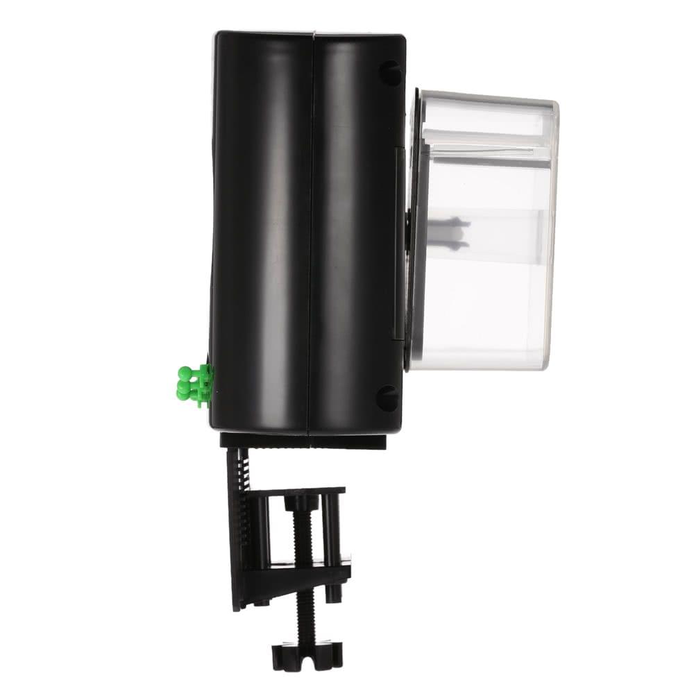 description":"The simple designed fish food timer is very easy to set up. With 24 hou index and second hand, the dial turns as the day goes on. There are six pins with the feeder and to set the feeding time, simply put the green clip on the time you want to feed. It is a automatic fish feeder, but you can also turn the dial manually to feed in the now. Really a convenient worry-free way to feed your fish while you're away. Features: Manual feeding is available. Feeding amount is adjustable. Just powered by a 1.5V AA battery (Not included). Feeding can be set up to 48 times a day. (Only 6 timing bolts included) The fish food timer can be fixed vertically or horizontally on the fish tank. Comes with a gelatin sponge and a bracket for more veatile fixed the food timer on fish tank. Specifications: Color: Black+green Material: Plastic Capacity: Approx. 60-70g / 2.12-2.47oz Power Supply: 1 * 1.5V AA battery (Not included) Working Temperature: -10℃~50℃ (-14℉~122℉) Item Size: Approx. 13 * 5.5 * 11.5cm / 5.12 * 2.16 * 4.53in Item Weight: Approx. 303g / 10.71oz Package Weight: Approx. 393g / 13.87oz Package Size: Approx. 13.5 * 10.8 * 15cm / 5.31 * 4.25 * 5.90in Package List: 1 * Fish Food Timer 1 * Gelatin Sponge 1 * Bracket 6 * Timing Bolt 1 * Manual (English) Note: Adjusting the dial clockwise.