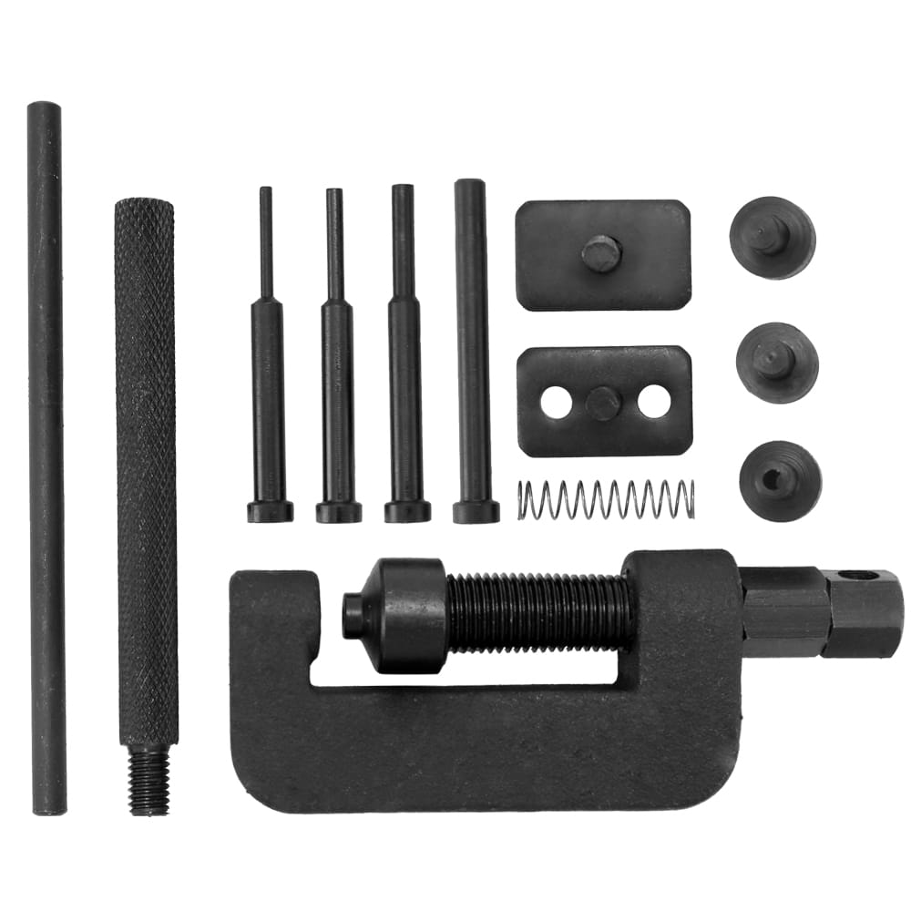 Designed to rivet chain links to form an endless chain and is versatile enough to be used on cam chain to drive chains.Features:Breaks and rejoins most types of chain quickly and easily.Suitable for most sizes of drive or cam chain from 35 to 630.Supplied with a range of pins dies.Universal application for use on motorcycle drive chains.Includes all the tools required for cutting and disassembly of press fitted connecting links.Also for riveting of the connecting pin plate.4 pins ranging from 2.2mm to 3.8mm are included press plates anvils and afine quality chain press.Specifications:Pins: 2.2mm 2.9mm 3.8mmPin guide: 2.2 upper/2.2mm lower riveter pinAnvil: 3mm 6mmBox color: redBox size: 220 * 120 * 50mm / 8.7 * 4.7 * 2.0inPackage size: 220 * 120 * 50mm / 8.7 * 4.7 * 2.0inPackage weight: 768g / 1.7lbPackage list:1 * Box3 * Anvil4 * Pins1 * Spring2 * Press Plate1 * Lever1 * Handle1 * Chain Press