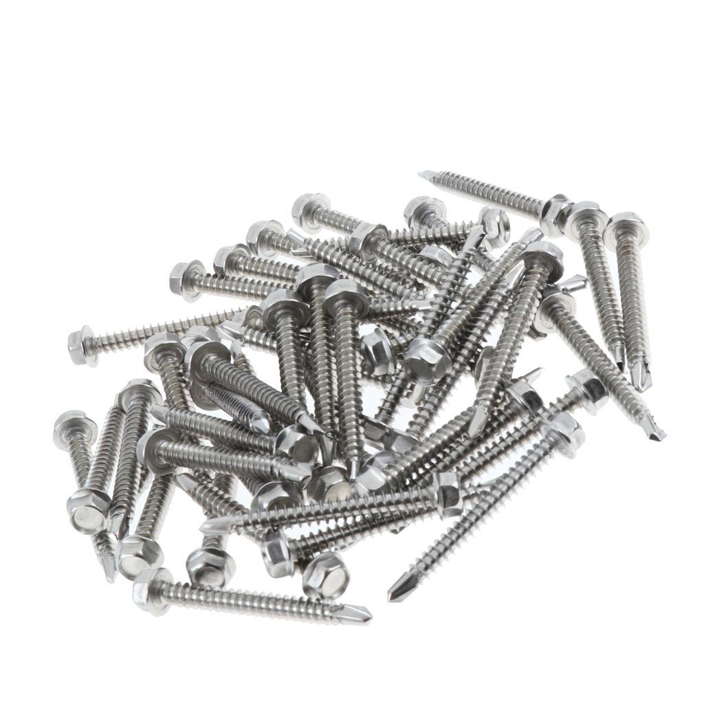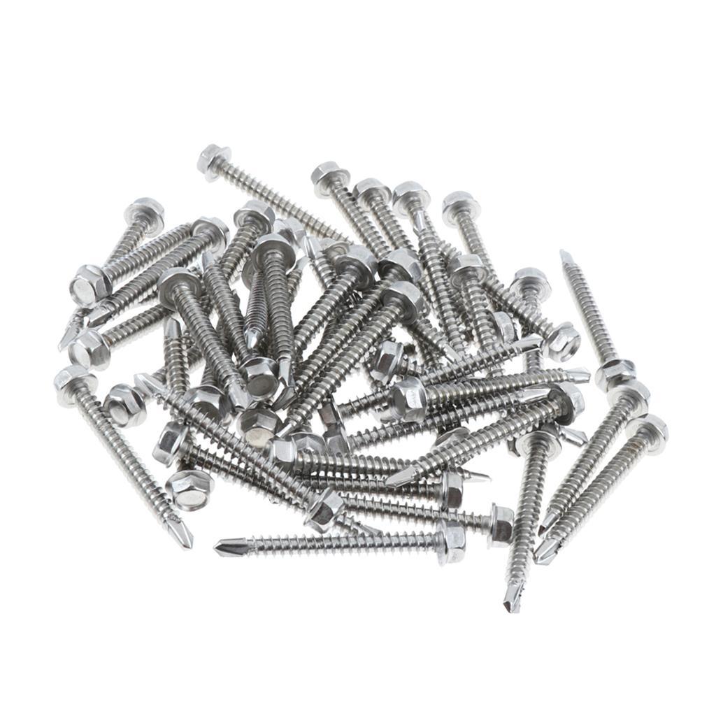 50 Pieces M4.2 Self Tapping Drilling Screws Hex Washer Head Fasteners 38mm