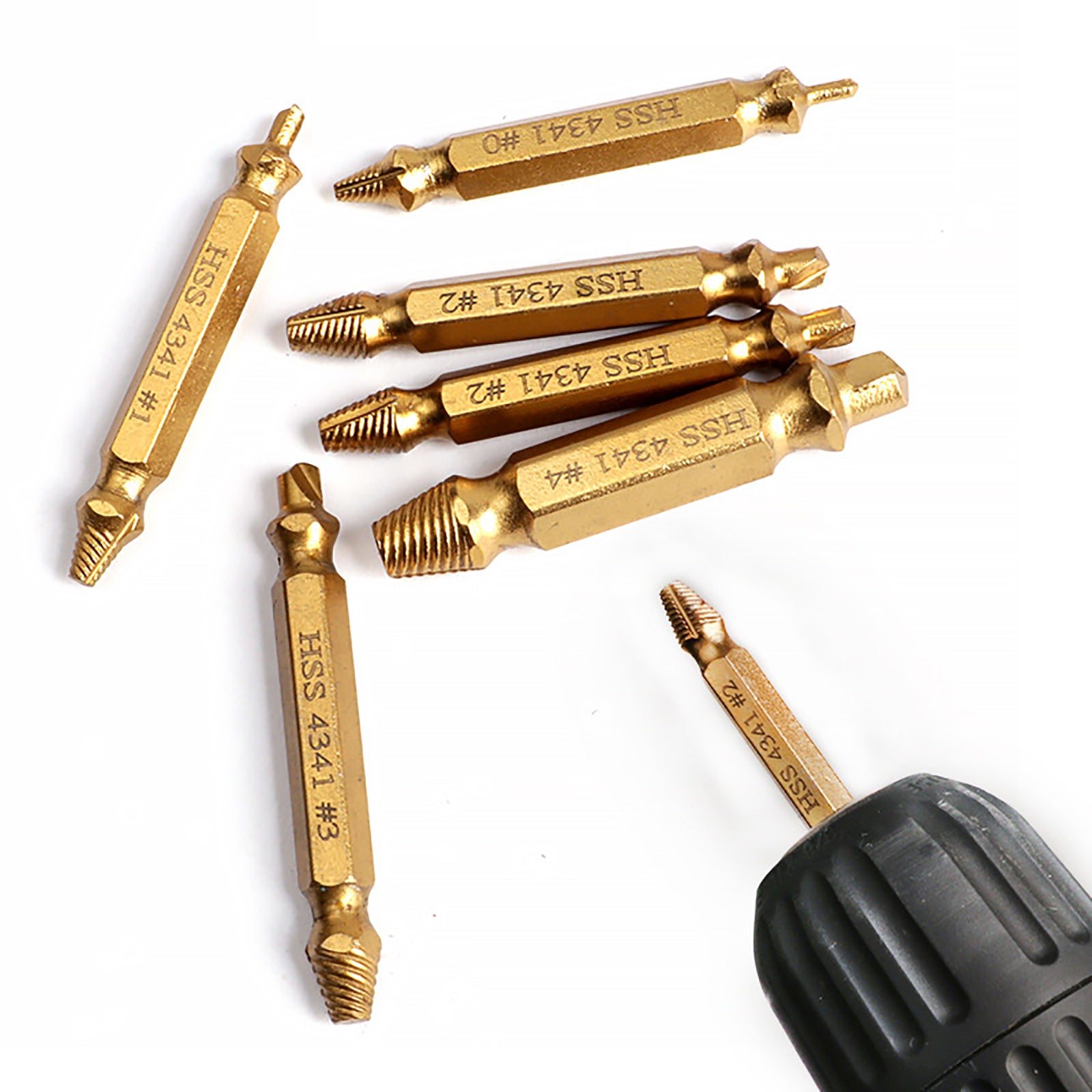 Easy to Use: Use the drill bit to drill a hole in broken screws. Change to use the extract bit with the same size. Reverse use the drill and take out the broken bit.