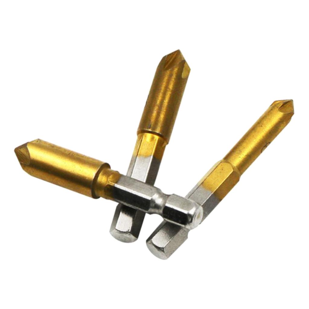 Premium Quality - The 1/4″ hex shank countersink cutting tools are made of standard high speed steel. With high-frequency quenching for heat treatment, the HSS countersink bits have high hardness and toughness. Coated by titanium, the chamfer cutter kit is rustproof and has a long service life.